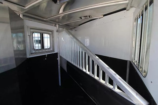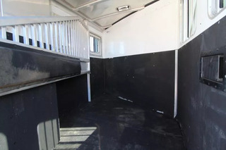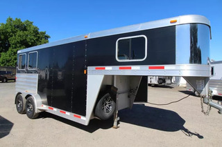 This trailer has a nice big dressing room and a rear tack! The saddle rack can be moved between the dressing room & the rear tack according to your preferences. Very good condition overall. Trailer Features include: * 7’0? wide * Exterior Sides * .040 white aluminum side sheets w/ stainless nose; Extruded aluminum slat outside of horse area * 4’6? short wall dressing room * Horse area walls insulated and lined w/ white aluminum; Rubber installed 48? high w/ white aluminum lining above; Aluminum kickplate behind rubber lining * Streetside 27? x 31? heavy-duty feed doors w/ drop bars and curbside 27? x 31? windows w/ bars and screens; One window in rear door * One 19? x 26? window on each side of gooseneck * 55/45 rear doors w/ 19? x 26? window on load door; Dual cam locks w/ lockable hasp on rear doors * Full-width rear rubber bumper * Single piece aluminum roof w/ one roof vent per stall * Interlocking extruded plank flooring w/ 2” x 4” I-beams on 16” centers * Rubber floor mat in horse area * Two inside tie rings and two outside tie rings per horse * Nylon safety straps at rear load door * Kingpin hitch w/ 2 5/16? adjustable coupler * Single leg landing gear w/ removable crank handle * (2) 5,200 lbs. rubber torsion axles w/ electric brakes * Five 16” 6 hole aluminum wheels w/ 10 ply tires (includes spare) * * Breakaway switch w/ battery & slip hook safety chains * Exterior Lighting * LED brake, running lights and rear load light * One interior LED light per divider in horse area; Two interior LED lights in dressing room; One interior LED light in rear tack * Padded air flow slant stall dividers w/ body, shoulder and head separator; Fully recessed slam latch for divider * Carpeted dressing room floor, drop wall and gooseneck bed * Adjustable saddle rack on removable post (one per horse) in rear tack - The saddle rack can be moved between the dressing room and the rear tack * Fold-up rear tack wall (lined one side) * Blanket bar, brush tray, clothes rod and six halter hooks; One set of 6 halter hooks in rear tack * Camper door with sliding window & screen door in dressing room ** Descriptions Subject to Error** For more information on this trailer please contact Double J Trailers at 360-225-1234. Thank You! Financing available to qualified buyers! All trailer prices are cash prices. Thank you! Trades Welcome Two Lots To Better Serve You! Woodland Washington & Albany Oregon We have over 250 trailers in stock. Please view our entire inventory at [www.double-j.com](http://www.double-j.com/) thank you! *Double J imposes a surcharge of 3% on credit card purchases of amounts greater than $500*