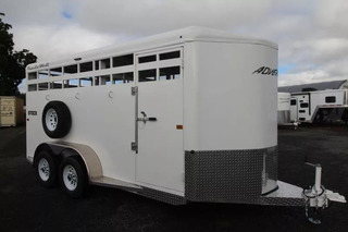 The Adventure Stock is a bumper pull livestock trailer that measures 6’9” wide x 7’ tall. The design of this trailer has electro-galvanized seamless corrugated steel sides for strength and durability. This extra-safe stock trailer is light weight and built for safety. This is a great pulling trailer because of the aerodynamic design of the front, cutting the wind while still providing enough open space to haul your livestock in comfort. Check out this great priced trailer that is built for real stock men and women. Upgrades: Flood Light (curb side) Rubber Wall Mats Spare Tire Trailer Features: 6’9” Wide 7’0” Inside Height Escape Door Center Gate Double Air Gaps 5200# Torsion Axles Galvanized Steel Interior & Exterior Rubber Floor Mats Tread Brite Front Gravel Guard LED Interior Stock Light w/Switch Rear Slider Gate Rear Load Light Backup Lights LED Marker Lights Warranty: One Year Paint/Trim Five Year Limited Structure Eight Year Limited Floor ** Descriptions Subject to Error** For more information on this trailer please contact Double J Trailers at 360-225-1234. Thank You! Financing available to qualified buyers! All trailer prices are cash prices. Thank you! Trades Welcome Two Lots To Better Serve You! Woodland Washington & Albany Oregon We have over 250 trailers in stock. Please view our entire inventory at [www.double-j.com](http://www.double-j.com/) thank you! *Double J imposes a surcharge of 3% on credit card purchases of amounts greater than $500*