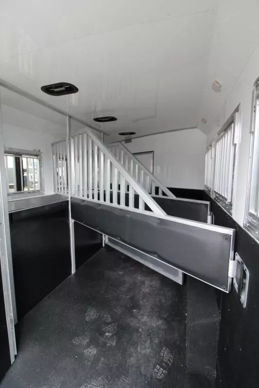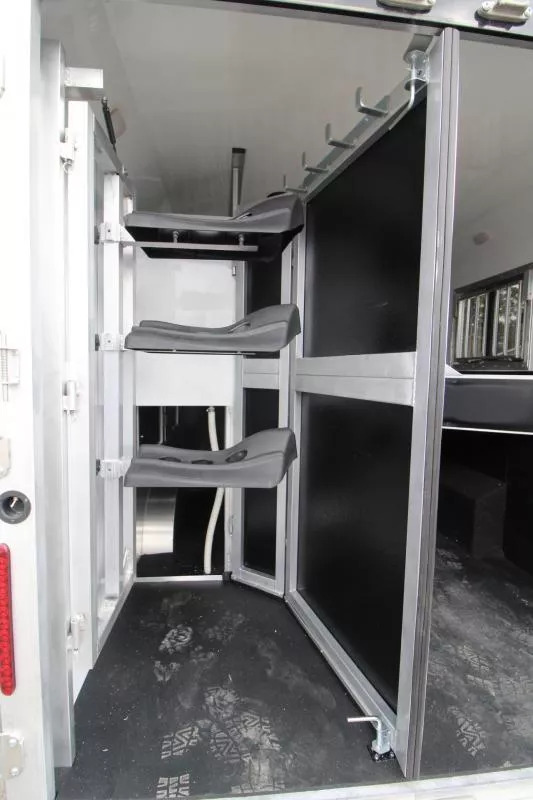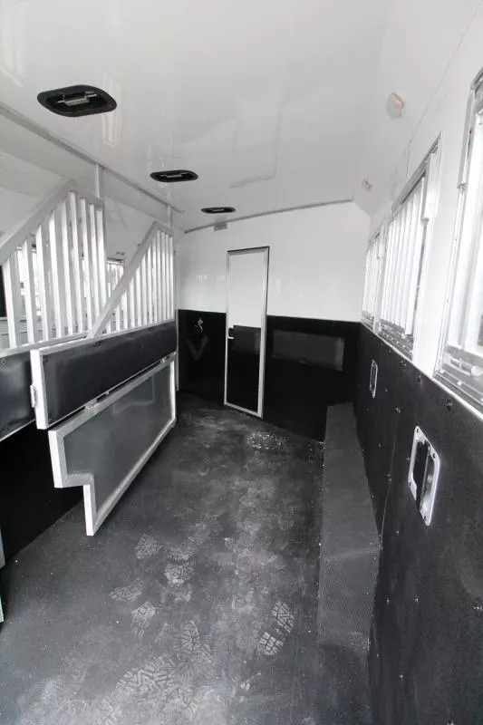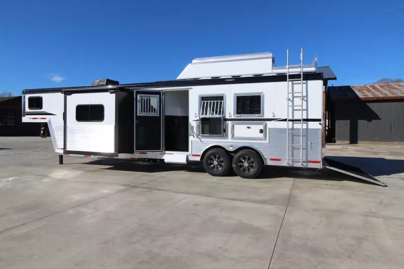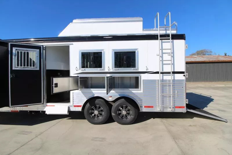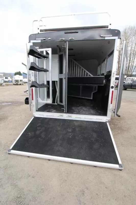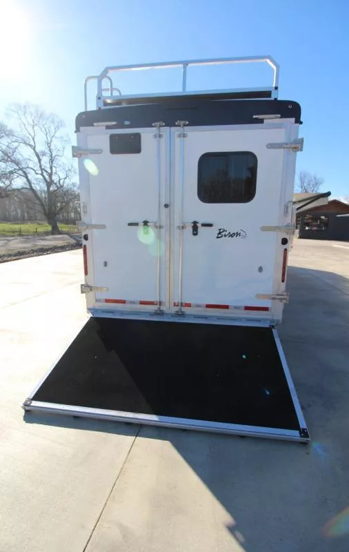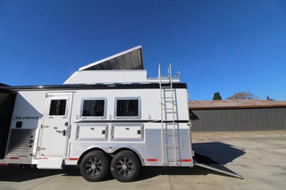 PRICE REDUCED $1,900 Introducing the Silverado aluminum frame luxury coach! Embrace the perfect balance of elegance and sturdiness as you embark on unforgettable journeys. With the Silverado’s superior craftsmanship and thoughtful design, you’ll experience the pinnacle of comfort and convenience, all while benefiting from its lightweight advantage. Welcome endless possibilities with the Bison Silverado - The Ultimate Companion for Your Travel Dreams. Upgrades: Aluminum Rear Ramp Extruded Aluminum Siding Dual Leg Hydraulic Jack Solar Package Sofa & Dinette 32” LCD TV w/Locking Swing Arm Lined & Insulated Horse Area Ceiling Hay Pod & Ladder Spray Port w/Quick Connect Hose Oven w/3 Burner Stove Hat Rack Trailer Features: 8’0” Wide 7’ 4” Inside Height 30 Amp Service w/Detachable 30 Amp Power Cord 7000# Axles Exterior Water Spigot LED Exterior Lights (2) LP Tanks w/Dual Regulator Step at Entrance Door Spare Tire & Rim TV/Radio Antenna (2) Batteries-GRP 24 w/Shut-off White Exterior Powered Awning w/LED Light Strip Brite Nose-Front Panel Living Quarters Features: Chestnut Brown Interior Westport Mink Flooring Artist Maple Cabinetry Residential Faucets Roller Shades w/Valance Glass Shower Door LED Lighting Throughout Microwave Radius Shower w/Dual Control Handles 18,000 BTU Furnace Refrigerator Shirt Closet Sink Covers Skylight in Shower Stainless Steel Kitchen Sink 6 gal. DSI Water Heater Gas/Elec. 15,000 BTU A/C, Ducted- to Horse Area Stereo w/Interior & Exterior Speakers Bunk Privacy Curtain Cable Inlet Countertop Extension Porcelain Toilet Queen Mattress w/Bed Sheet Horse Area Features: 3-Way Switch for Horse Area Heavy Duty Drop Down Windows Head & Tail Side 60/40 Rear Load Doors Aluminum Air Flo Dividers (4) Load Lights RV Door Latch at Escape Door Step at Escape Door Heavy Duty Kick Wall & Horse Door Liner Mangers Stud Wall Tack Area Features: Swing Out Saddle Rack Swing Out Blanket Bar Bridle Hooks ** Descriptions Subject to Error** For more information on this trailer please contact Double J Trailers at 360-225-1234. Thank You! Financing available to qualified buyers! All trailer prices are cash prices. Thank you! Trades Welcome Two Lots To Better Serve You! Woodland Washington & Albany Oregon We have over 250 trailers in stock. Please view our entire inventory at [www.double-j.com](http://www.double-j.com/) thank you! *Double J imposes a surcharge of 3% on credit card purchases of amounts greater than $500*