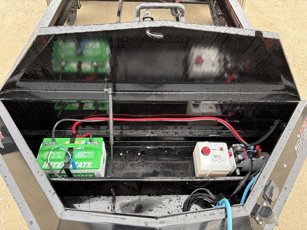 Bumper Pull2 - 7K Lippert Electric Brake Auto Adjust EZ Lube Spring AxlesST235/80R16 Tires (10 ply) w/Black Mod WheelsWeld on Spare Tire Mount2-5/16” Adjustable BP Coupler (17K)1 - Side Wind Spring Loaded Drop Leg Jack (12K)Mega Lockable Toolbox Houses Battery & Pump8” Integrated Wood Extension Brackets3 Way Door Gate - Spreader GateRamp Pockets w/6’ 4” Long Slide in 3” Channel Ramps14ga. Diamond Plate Steel Fenders19” Sides8” Integrated Wood Extension Brackets4 D-Rings Welded Inside Bed8” I-Beam FrameNeckboss 8” Engineered I-Beam Tongue3/8” Grade 70 Safety Chain w/Clevis Hook3” Channel 16” Spacing Crossmembers2 Button Hydraulic - Power Up/Power Down Pump1 - Interstate 27 Deep Cycle Battery110V Integrated Trickle ChargerManual Tarp KitAll-Weather Wiring Harness (7-Way RV)DOT Approved LED LightsPowdercoat Black9 ga. Steel BedWeight: 4,460 lbs.