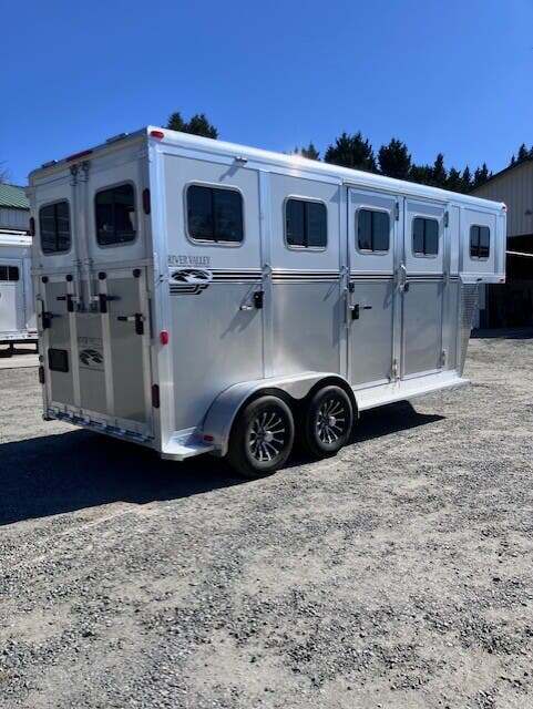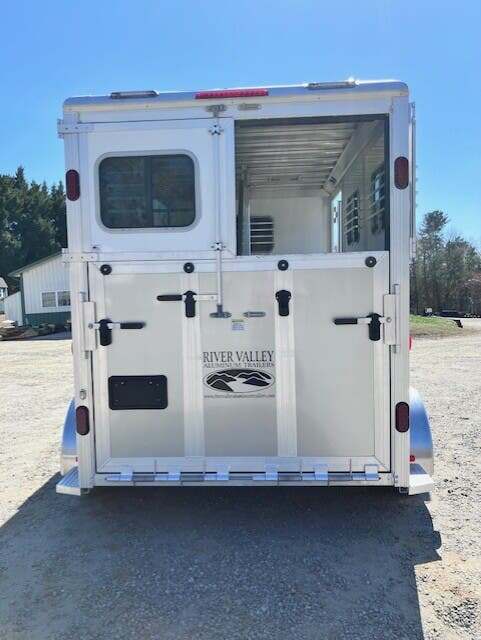 2026 River Valley 2H GN w/Dress, 7’6”x6’8”, White Top/Silver Bottom, Rear Ramp w/ Curtain Doors w/Windows, Shelby Flooring, Loading Light, Light in HA, 90” Stalls, (2) Escape Doors, Removable Partitions, Tubular Head and Shoulder Dividers,  Window in Dress Wall, Washable Floor in Dress,(2) Lights in Dress, (2) Saddle Racks, (2) Boot Boxes, Brush Box, Spare Tire GVWR 9950, Empty 4580, Carry 5370