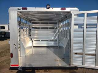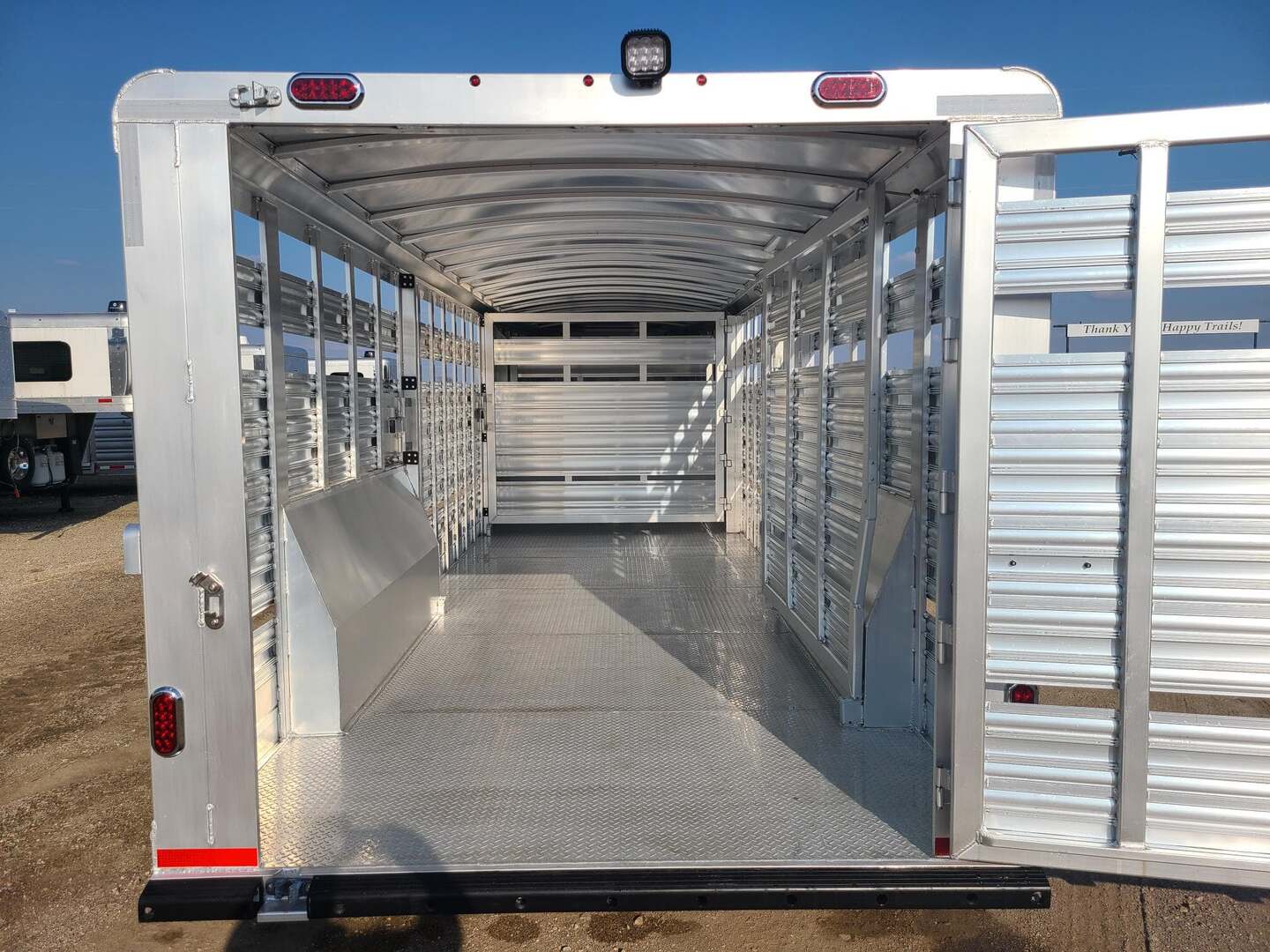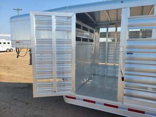THIS TRAILER IS ON ORDER AND WILL ARRIVE IN APRIL Platinum Coach 24’ Stock Trailer....7 TALL!! 8 x 24 x 7’ tall Mill Finish exterior skin 7000# axles with 10 ply tires & spare Two cut gates, 48” front, 120” middle, 120” back Slider on rear gate 36” stock escape door 2” air crack down low 7 lights on top rail One LED light per section LED load light at rear Mill Finish Exterior Skin 50” drop height, for more clearance at truck