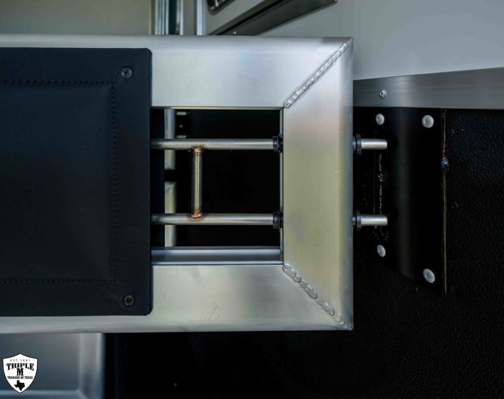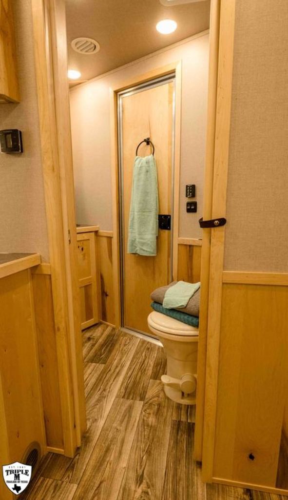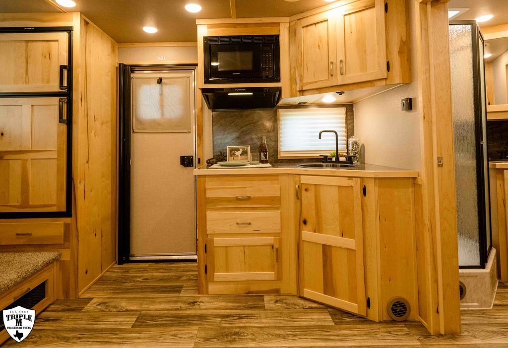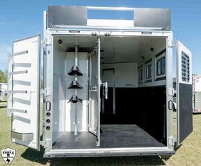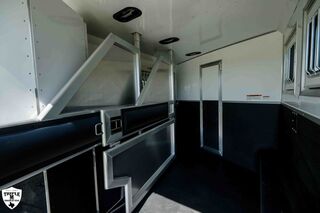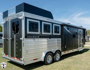 3H CHARGER w/ 11’ REAR KITCHEN LQ & SLIDE 25’6” FLOOR / 33’8” OVERALL 8’ WIDE / 7’6 TALL 6’ FLUSH FLOOR SLIDE w/ DINETTE HORSE AREA PACKAGE: Escape Door w/ Bauer Latch & Side Step Saddle Bosses Bottom Stall Divider INTERIOR PACKAGE: Pass Thru Door Dual Batteries Skylight in Shower Rain Sensor Fan ENTERTAINMENT PACKAGE: TV Stereo w/ (2) Indoor & (2) Outdoor Speakers RECESSED COOKTOP MANGERS REAR TACK 10 GAL H2O HEATER DAY/NIGHT SHADES LIGHTED GRAB HANDLE EXTRUDED SLATS ON HORSE AREA DROP DOWN WINDOWS ON BOTH SIDES 3 WAY SWITCH FOR HORSE LIGHTS EXTRA CLEARANCE LIGHTS HAYRACK w/ LADDER POLISHED NOSE WRAP RUSTIC MAPLE WOOD PACKAGE BRONZITE COUNTERTOP VOYAGER FINA LINOLEUM ELEGANCE SEAL w/ VALPORAISO STONE INSERT 7K TORSION AXLES 16” E RANGE TIRES w/ POLISHED ALUMINUM RIMS MATTE BLACK METALLIC SKIN EMPTY = 9,380 GVWR = 13,680