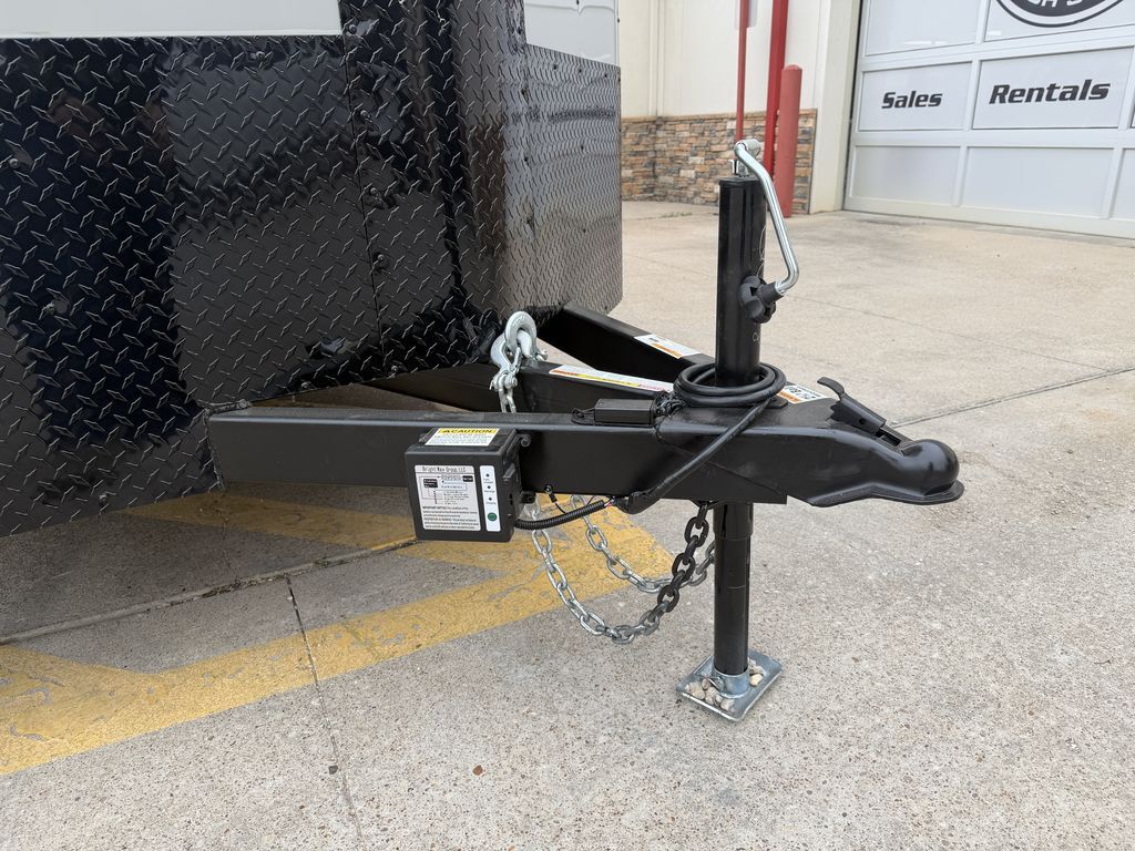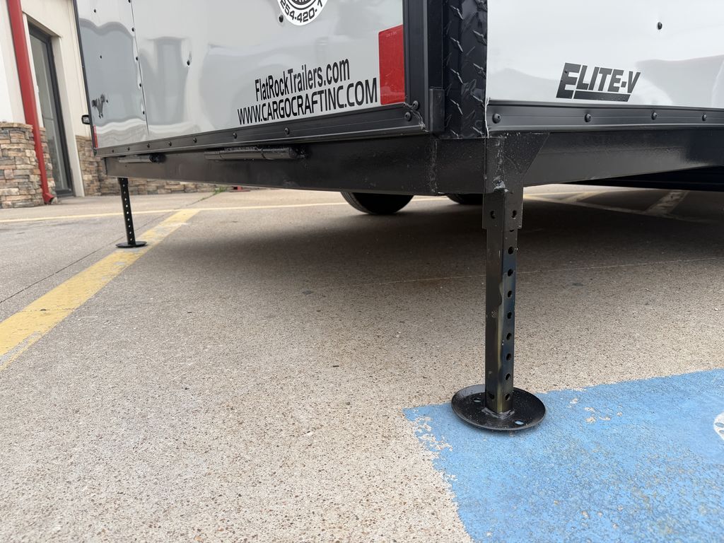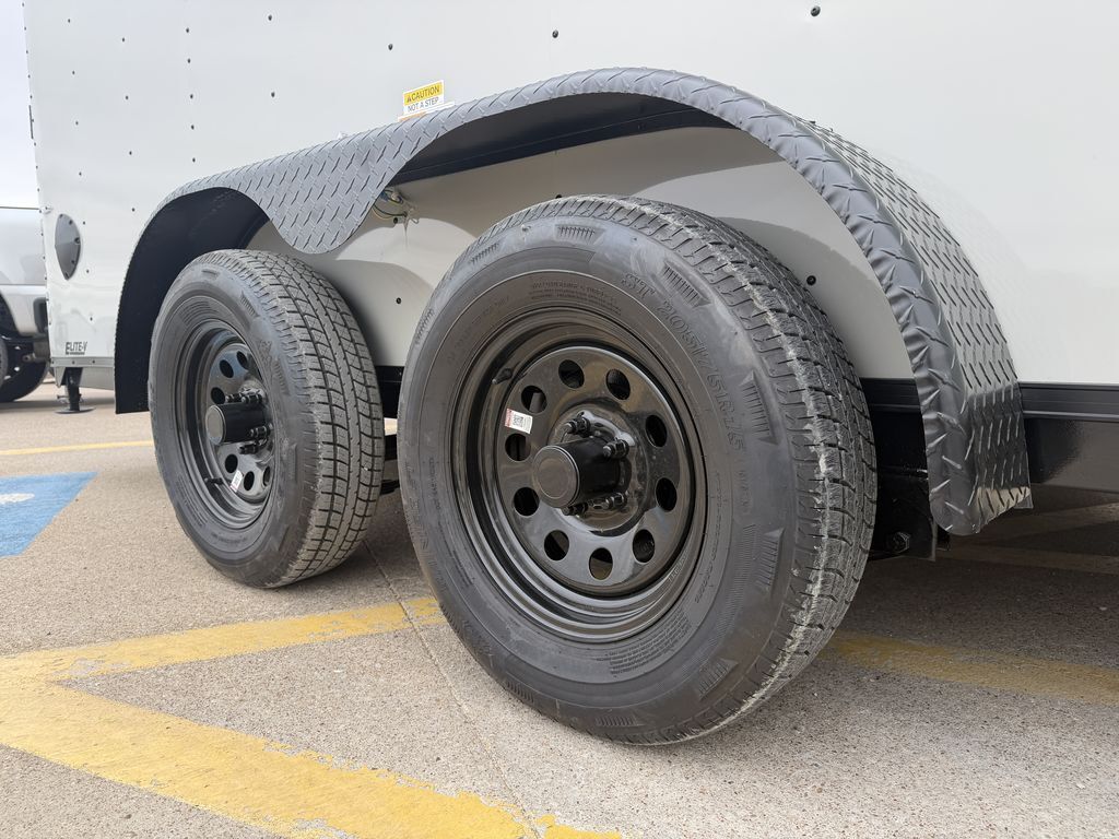 7’ x 18’ Tandem Elite V Nose Cargo 2 x 3,500 lb. EZ Lube 4 in Drop Brake Axles Triple Tongue V Flat Roof System 2 5/16 in Coupler 205 75 R 15 in Radials (Black Mods, Caps, and Lugs) 2K Jack Non Powered Roof Vent Intergraded Hitch Design Stabilizer Jacks (Rear) ATP Post Cover on V 30 in Side Door Upgrade w/ Cam Bar and RV Lock Aluminum Wrap on Rear Door Jambs (Blacked Out) 24 in ATP Front Stone Guard (Blacked Out) ATP Aluminum Fenders (Blacked Out) 7’ Interior Height Spare Tire Mount Spring Assist Rear Ramp Door 3/4 in Gray Sealed Painted Floors 3/8 in Plywood Walls 2 x 12 Volt LED Interior Lights w/ Switch   Empty Weight: 2,400 lbs. GVWR: 7,000 lbs. Carrying Capacity: 4,600 lbs.