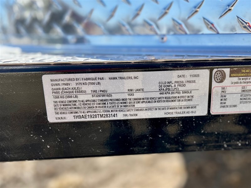 Trailer Details: * Galvanized Steel Frame, Wood Floor, Fiberglass Seamless One Piece Roof, & Aluminum Exterior Wall * 19’10” Overall Length * 17’ 2- 1/2” Floor Length * 80” Width * 7’8” Inteior Height * (2) 3500# Axles & 4 Wheel Electric Brakes * 2- 5/16” Wedge Lock Coupler * ST225/75R15 ( D ) Tires & Spare * D.O.T Lighting Horse Area Details: * 7’6” Stall Length * (2) Escape Doors & Side Ramp * Rubberline Sidewalls * Breast/Butt Bar Pads Added * Divider, Sidewall, & Rear Header Padded * Floor Mats 5/8” * Triangle Feed Bags * Interior/ Exterior Head Ties * 50/50 Rear Doors w/ Ramp * Running Boards Front Dress Details: * Front Dress * Carpet On Floor * Complete Spare Mounted * 20 X 24” Window * Aluminum Bridle Hook Set * Brush Tray on Door * Stackable Tree Rack GVWR 7000# Empty Weight 3960# Sale Price Does Not Include Tax, Registration Fee, License, Freight, & Document Fee. We do not take out of State Checks. No guarantee as to the accuracy of this document is expressed or implied.