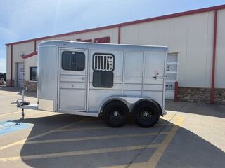 13’ x 6’ (Width) x 6’ 6 in (Height) 2 Horse Slant Load Trailer 2 x 3,500 lb. Torsion Axles (Upgrade Hubs to 6 Hole) Brakes on Rear Axle Slant Dressing Room Mats on Floor Including Dressing Room Rubber Line Butt Side 2 Dome Lights 14 in x 21 in Window in Dressing Room Door 2 in Bulldog Coupler 1 Headstall Divider 1 Piece Full Rear Gate 2 Head Side Drop Down Windows (Head Side) 48 in Sold Tail Side (24 in Air Gap) 2K Top Wind Jack 2 x Removable Saddle Racks in Dressing Room ST 235 80 R16 (Super Tires) Spare Tire Mount (Mount Only) Smooth Fenders Empty Weight: 2,580 lbs. GVWR: 7,000 lbs. Carrying Capacity: 4,420 lbs.