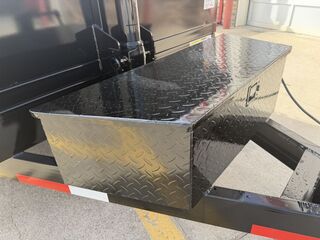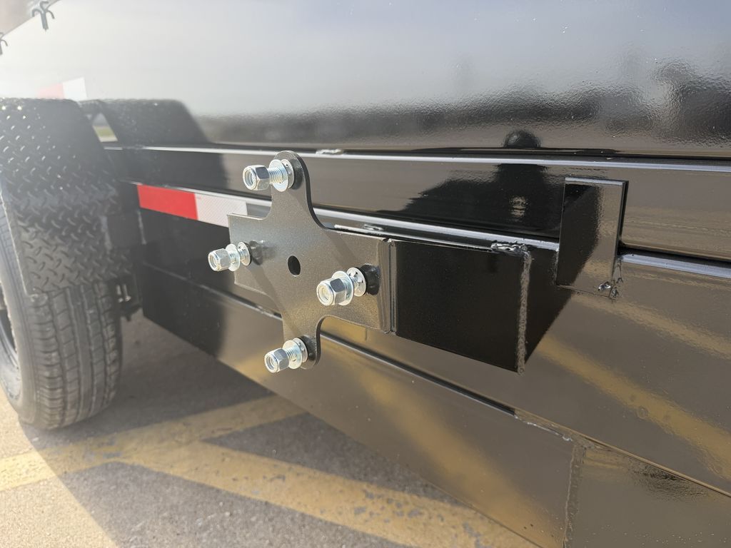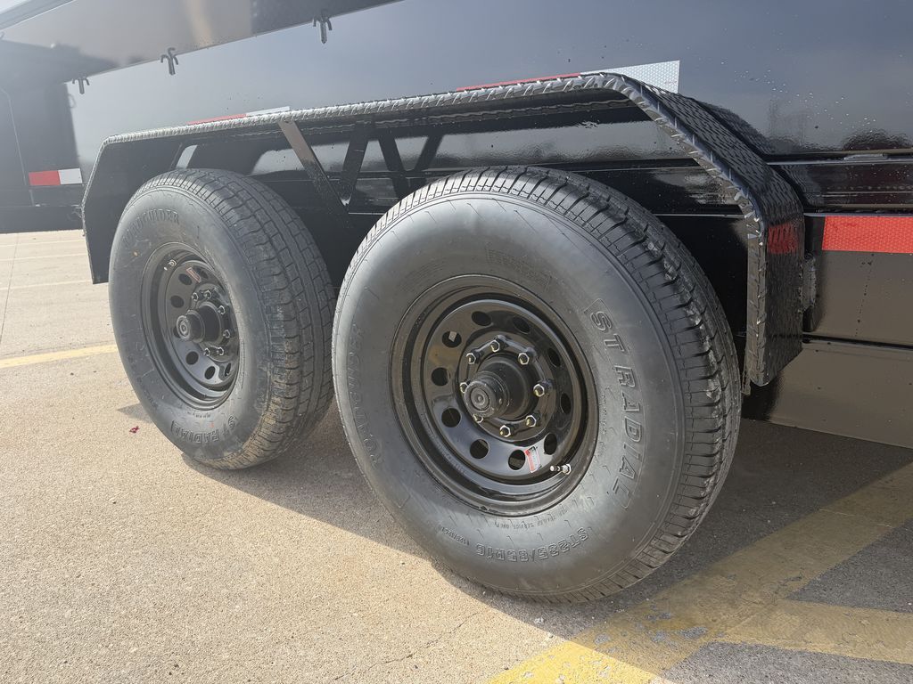 7’ x 16’ x 2’ Flare Side Dump Trailer 2 x 8,000 lb. EZ Lube 8 lug (Brakes on both axles) Heavy Duty Slipper Spring Suspension Tires: New ST235 85 R 16 LRE 14 Ply Radials Main Frame: Full 6 in. channel Tilt Frame: 3 in. x 2 in. tubing Cross Members: 3 in. channel Bed Flooring: 1/8 in. thick sheet steel Bed Siding: 1/8 in. thick sheet steel Deck width: 82 in. Deck Length: 16’ Deck Height: Approximately 28 in. Side Wall Height: 24 in. Rear Doors: Double swing doors (open like barn doors) Battery: Group 24 deep cycle marine Pump: Electric over hydraulic (1.7 gpm) Controller: 15’ corded remote control Front locking toolbox contains battery and pump Hydraulics: Single 3 stage hydraulic cylinder (14,000 lb.) 2 5/16 in. Adjustable Coupler Two heavy duty safety chains Spring loaded drop leg Fenders: 14ga heavy duty tread plate Lighting: All flush mount or recessed lifetime LED Empty Weight 4,200 lb. G.V.W.R. 16,000 lb. Carrying Capacity 11,800 lb.