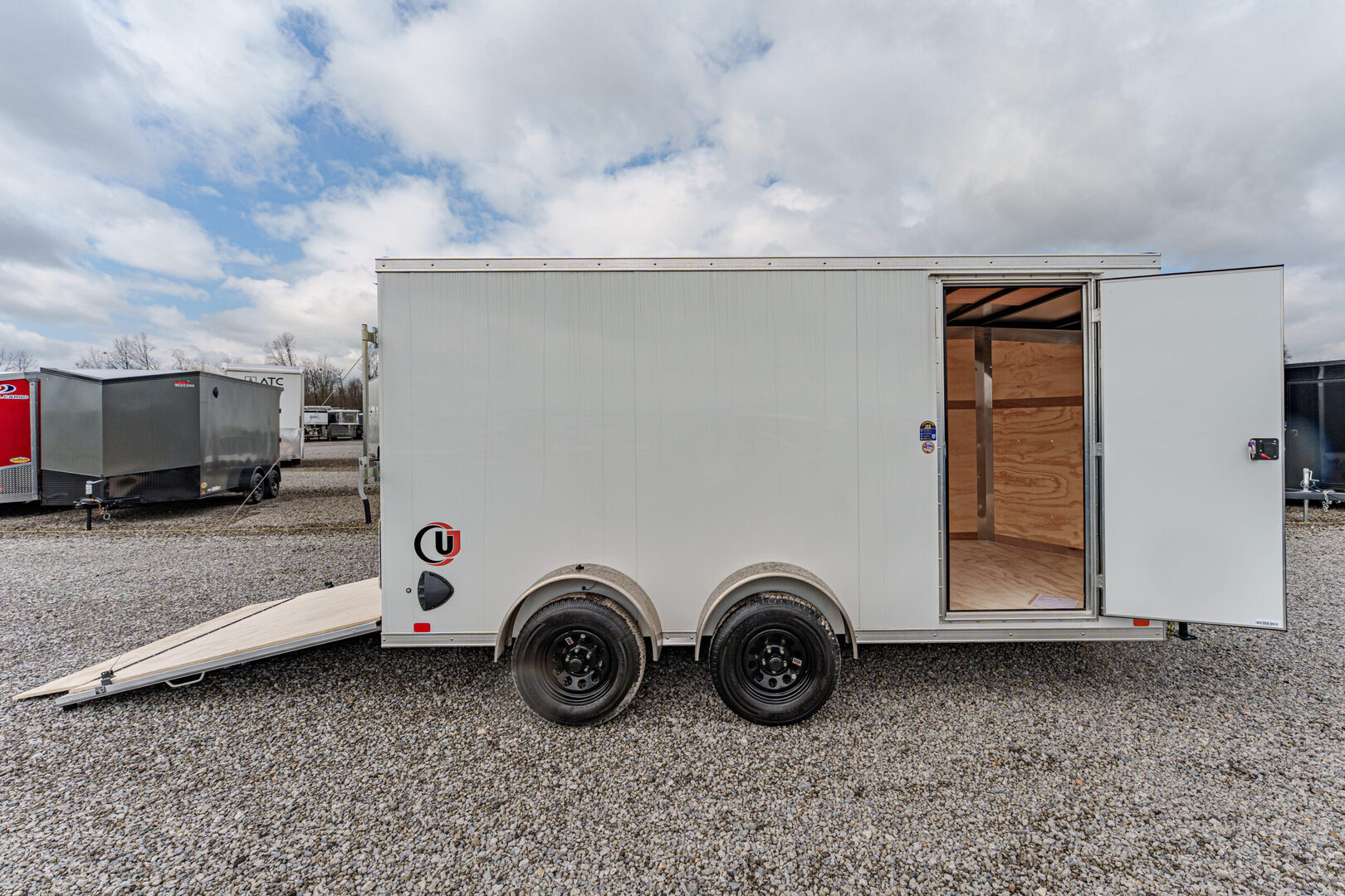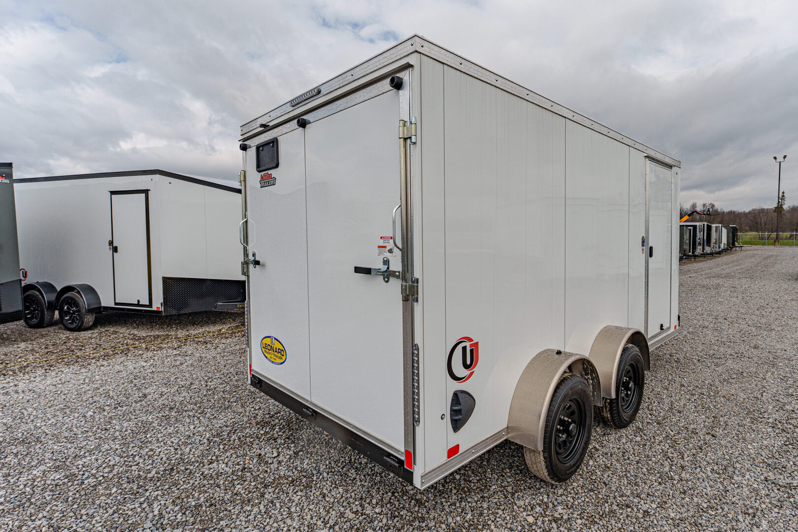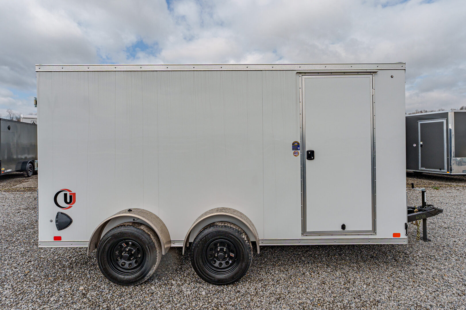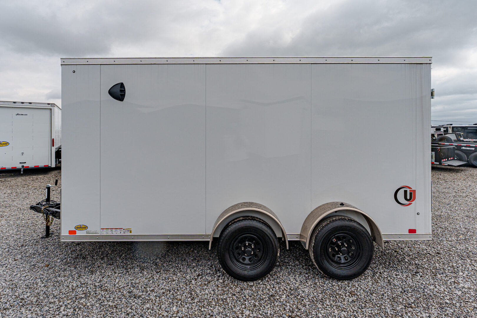 View Inventory: https://leonardtrailers.com/inventory/45849 Stock #45849 | New 2026 United UJ-S-714TA35-8.5 Cargo Trailer The 2026 United UJ-S-714TA35-8.5 is a commercial-grade cargo trailer built for secure, reliable transport with durable construction and convenient features. Key Features Height & Axles Standard interior height: 6’6” 2 x 3,500# electric brake torsion axles, moved back 5” Tandem spread axles, 5” spread Tires & Wheels 4 x ST205/75R15C Castle Rock on black steel wheels Hitch & Jack 2-5/16” coupler, 7-way molded plug, top crank jack w/ foot pad 2 safety chains, tongue with third member Frame & Roof 2” corner posts, 16” OC crossmembers & wall posts 2x4 tube frame with 24” V-nose w/ slant Roof bows 16” OC, aluminum seamless roof, Lauan center strip 24” Taped exterior metal Vents & Interior Sidewall TSR-175 vents 3/4” plywood floor, 3/8” plywood wall liner Dome light 12V, LED round recessed clearance lights, LED tail lights, 12V wall switch Exterior & Doors Slant nose, .030 smooth aluminum exterior, ATP slant-cut stoneguard 4 x 9” single round fenders Rear Ramp Door RV door 32” x 72” (15” from front) Notes 3-year limited warranty White exterior with UJ mill trim We offer outstanding financing options, accept trades, and can arrange nationwide NO HASSLE delivery! Inquire today! (888) 333-6613 We believe these specifications to be accurate. Any discrepancies are unintentional. Please verify information with a sales associate prior to purchase. Stock Number:45849