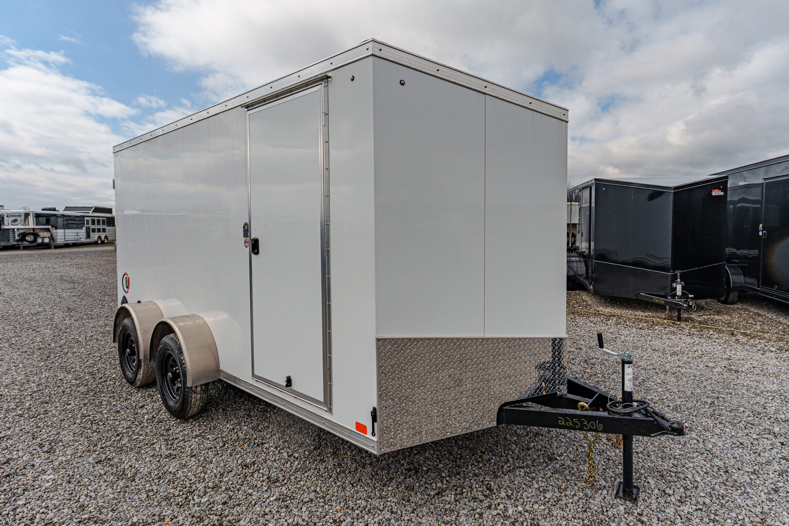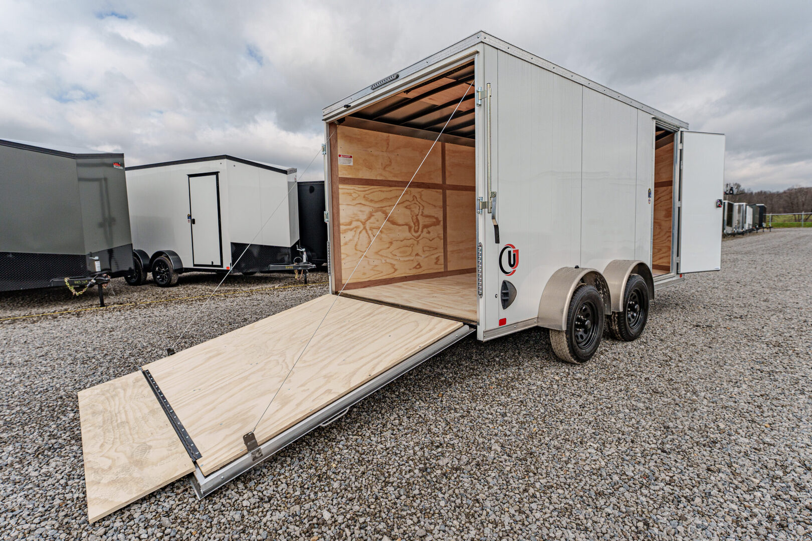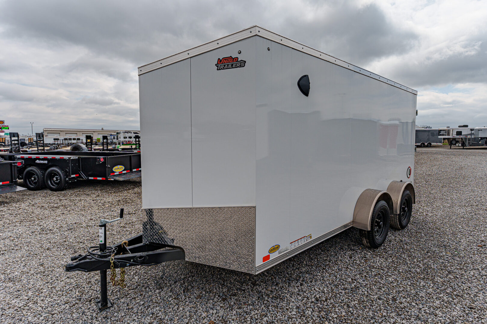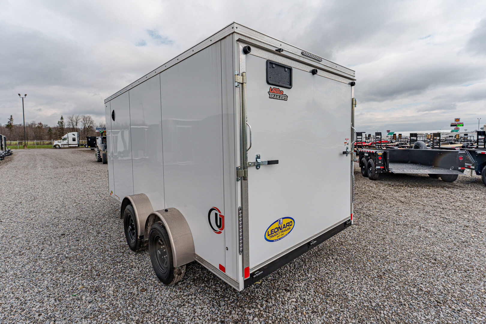 View Inventory: https://leonardtrailers.com/inventory/45849 Stock #45849 | New 2026 United UJ-S-714TA35-8.5 Cargo Trailer The 2026 United UJ-S-714TA35-8.5 is a commercial-grade cargo trailer built for secure, reliable transport with durable construction and convenient features. Key Features Height & Axles Standard interior height: 6’6” 2 x 3,500# electric brake torsion axles, moved back 5” Tandem spread axles, 5” spread Tires & Wheels 4 x ST205/75R15C Castle Rock on black steel wheels Hitch & Jack 2-5/16” coupler, 7-way molded plug, top crank jack w/ foot pad 2 safety chains, tongue with third member Frame & Roof 2” corner posts, 16” OC crossmembers & wall posts 2x4 tube frame with 24” V-nose w/ slant Roof bows 16” OC, aluminum seamless roof, Lauan center strip 24” Taped exterior metal Vents & Interior Sidewall TSR-175 vents 3/4” plywood floor, 3/8” plywood wall liner Dome light 12V, LED round recessed clearance lights, LED tail lights, 12V wall switch Exterior & Doors Slant nose, .030 smooth aluminum exterior, ATP slant-cut stoneguard 4 x 9” single round fenders Rear Ramp Door RV door 32” x 72” (15” from front) Notes 3-year limited warranty White exterior with UJ mill trim We offer outstanding financing options, accept trades, and can arrange nationwide NO HASSLE delivery! Inquire today! (888) 333-6613 We believe these specifications to be accurate. Any discrepancies are unintentional. Please verify information with a sales associate prior to purchase. Stock Number:45849