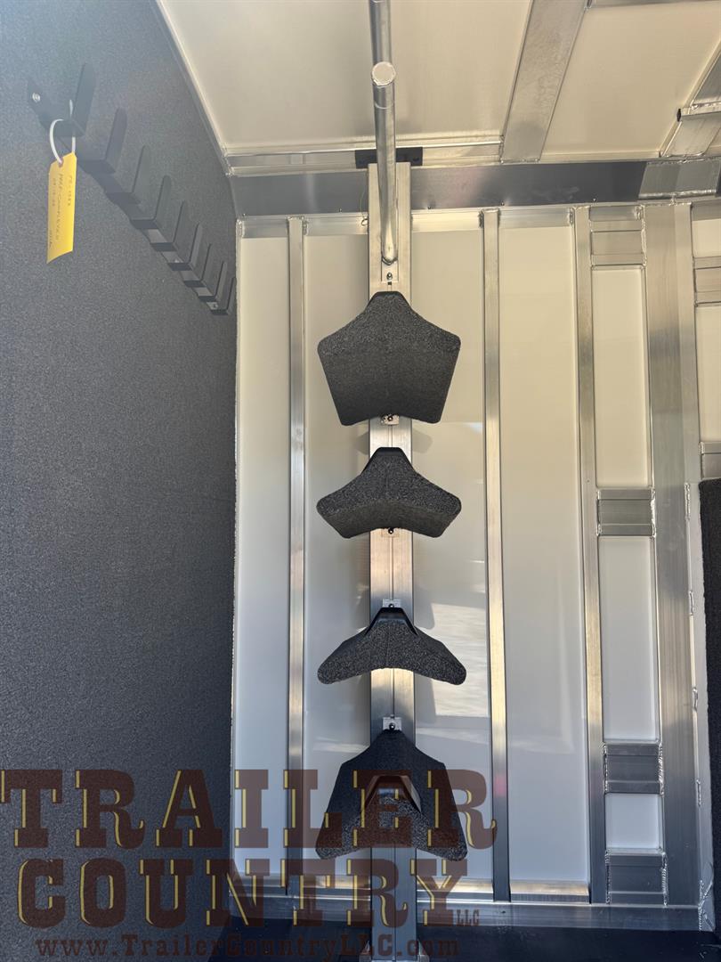- 5' dressing room with rubber mats on floor, 4 saddle racks, 2 blanket poles, 12 bridle hooks, clothing bar, carpet in nose, carpet behind bridle hooks