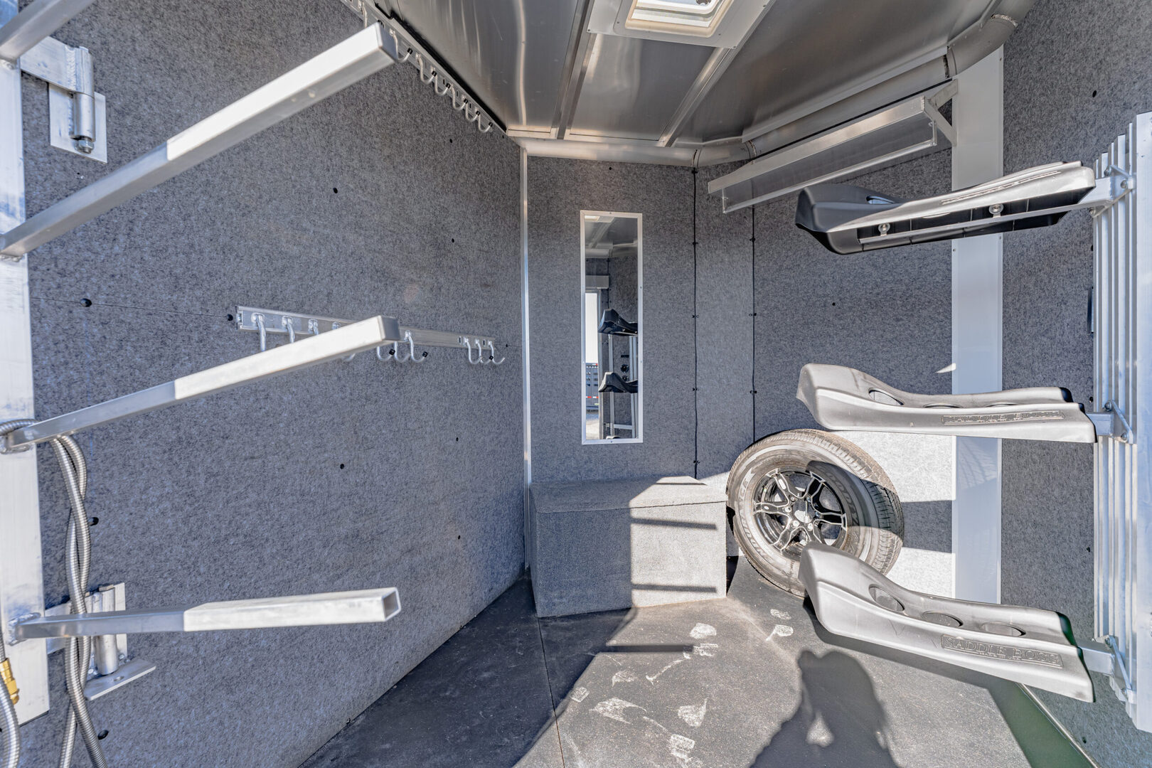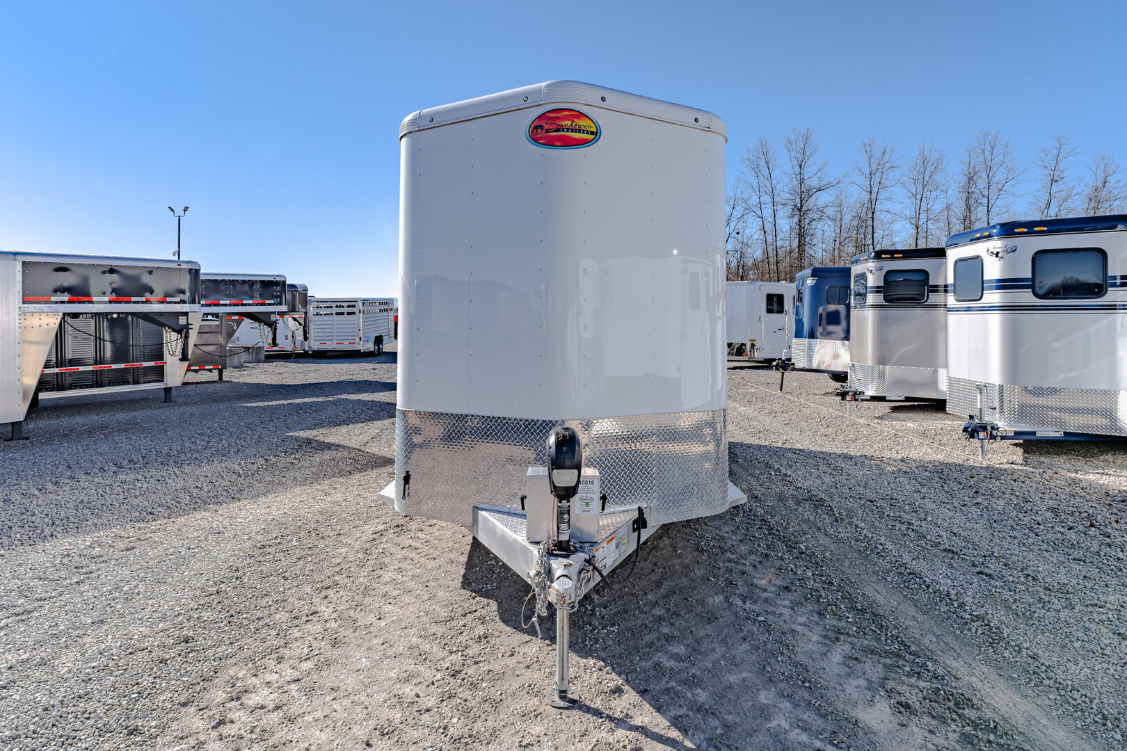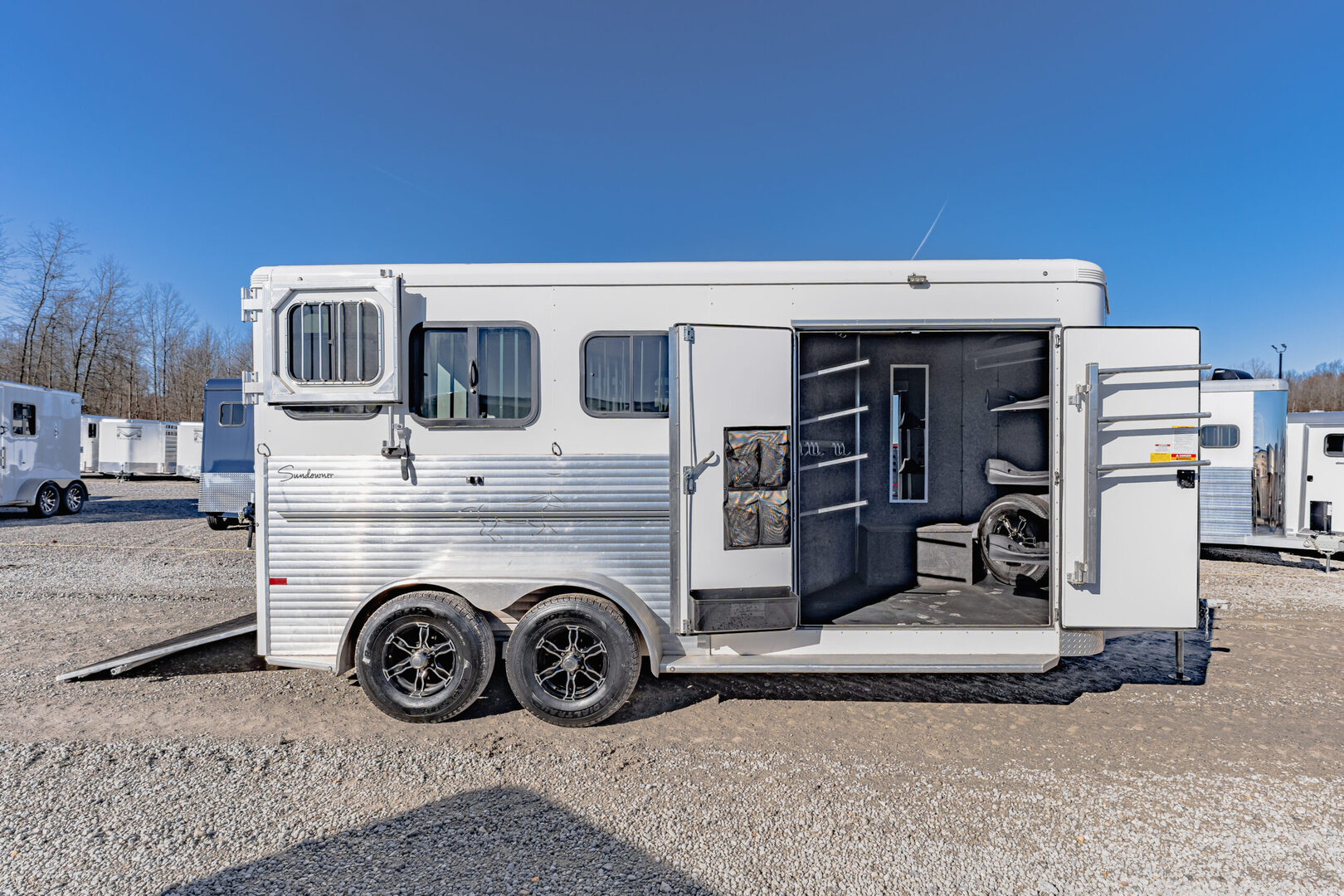View Inventory: https://leonardtrailers.com/inventory/45816 Stock# 45816 Used 2024 Sundowner Super Tack 3H Horse Trailer  General Information Exterior: XT / SS Construction: Aluminum Primary Color: White Stripe Color: Gray / Black Coupler Size: 2 5/16” Adjustable Coupler Roof: Aluminum Length: 19’ Width: 6’9” Height: 7’6” Horse Configuration Type: Slant Dressing Room Size: 6’ Awning: N/A Awning Style: Slant Dressing Room Options  Lined / Insulated Carpet Lights Hooks Windows Screen Door Camper Door Saddle Rack Location Horse Area Options Mats Pads Vents Lights Hayrack Rubber Lining Complete Escape Type 1 Full Walk Out Tack Area Type: Inside Dress Door / Gate Ramp with Tail Doors Axles / Mechanical / Weight GVW: 9,700 lbs Axle Size: 3,500 lbs Tire Size: 235/80R16 # of Brakes: 4 Breakaway Jacks: Single Ride / Electrical Rubber Ride Spare Brakes: Electric We offer outstanding financing options, accept trades, and can arrange nationwide NO HASSLE delivery! Inquire today for more information! (888) 333-6613 **We believe these specifications to be accurate. Any discrepancies are unintentional. Please verify information with a sales associate prior to purchase.** Stock Number:45816