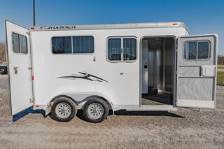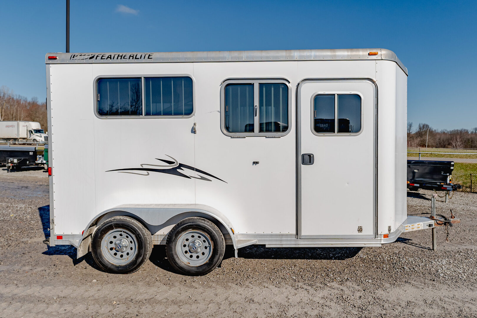 View Inventory: https://leonardtrailers.com/inventory/45847 Stock# 45847 Used 2007 Featherlite 9407-6714 Horse Trailer  General Information Construction: Aluminum Primary Color: White Coupler Size: 2 5/16” Roof: Aluminum Length: 16’ Width: 7’ Height: 7’6” Horse Area Options Selected Mats Pads Vents Lights Mangers Escape Type 1 Full Walk Out Tack Area Type: Inside Dress Mid Tack 4’ Straight Wall Tack Contents  Saddle Racks Hooks Axles / Mechanical / Weight GVW: 7,000 lbs Axle Size: 3,500 lbs # of Brakes: 2 Breakaway Jacks: Single Electrical / Ride Ride Type: Standard  Electric Brakes   We offer outstanding financing options, accept trades, and can arrange nationwide NO HASSLE delivery! Inquire today for more information! (888) 333-6613 **We believe these specifications to be accurate. Any discrepancies are unintentional. Please verify information with a sales associate prior to purchase.** Stock Number:45847
