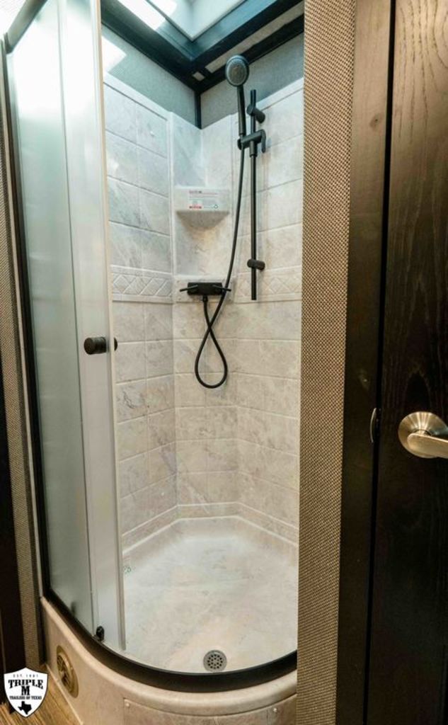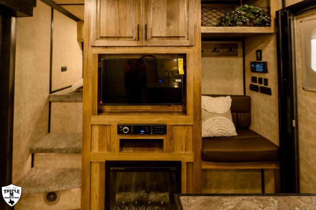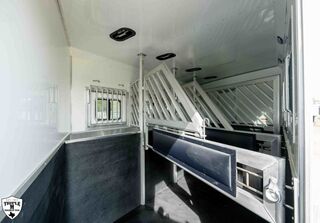 4 HORSE SIDE LOAD w/ 18’ LQ w/ BENCH SEATING 39’ FLOOR / 47’ OVERALL 8’ WIDE / 8’2 TALL body DROP DOWN WINDOWS ON BOTH SIDES REAR SIDE LOAD (includes): 50/50 rear Doors Full Carpeted Rear Tack Side Ramp over Last Door (2) Swinging Blanket Bars on each Rear Door (4) Bridal Trays (2) Brush Trays, one each Door Full Rear Step ADD 1’ TO REAR TACK 60 GALLON H2O IN REAR TACK SWING OUT SADDLE RACK ON CURB SIDE ALUMINUM SKID PLATE @ REAR OF TRAILER CENTER ENTERTAINMENT RECLINERS ILO SOFA EXTRA WARDROBE w/ HANGING RODS (2) A/C UNITS w/ SOFT START ADDED 50 AMP SERVICE HAYPOD w/ 5.5 GAS GEN EXTRA LIGHTS 12v FRIDGE WARDROBE ILO BAR FULL FRONT RISER SMOKED HICKORY CABINETS MEMPIN STRAW SOFT TOUCH DURKIN CHAULK SOFT TOUCH IN BATHROOM BRONZITE COUNTERTOP PEBBLE BACKSPLASH VOYAGER FINA LINOLEUM ELEGANCE CHOCOLATE FURNITURE CONVERTOR/INVERTOR COMBO (1) 5K LITHIUM BATTERIES DUAL SOLAR POWER WHITE SKIN EMPTY = 16,260 GVWR = 21,000