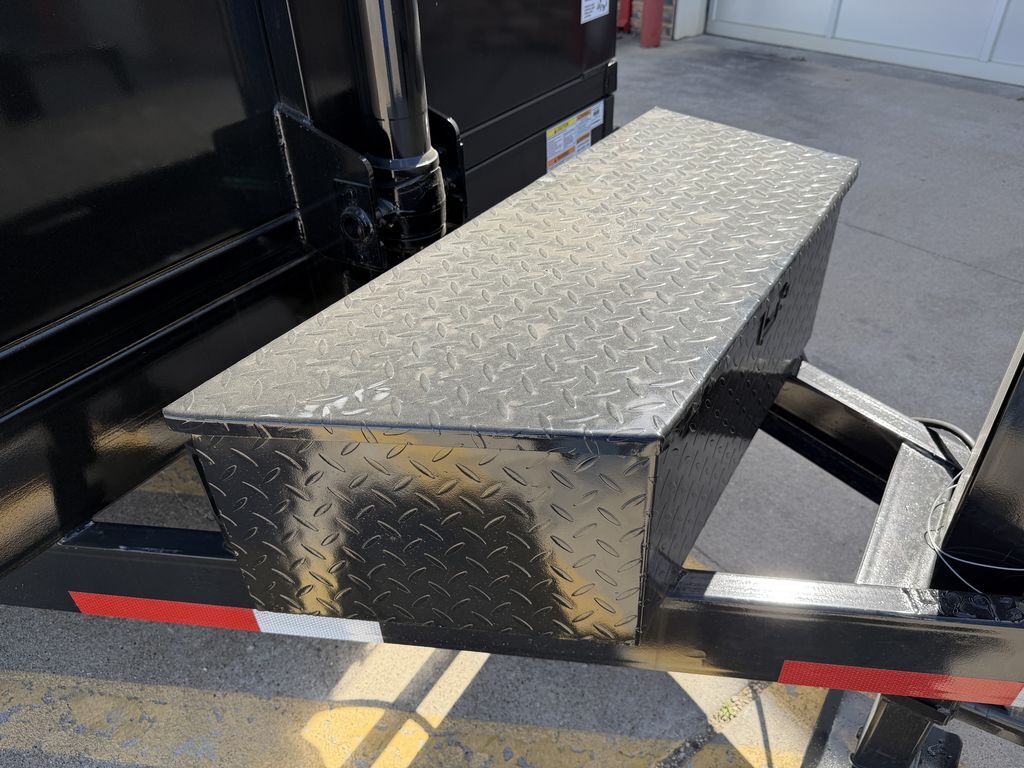 Ramps and Spare Tire (Not included in listed price) 7’ x 16’ x 4’ Dump Trailer 2 x 8,000 lb. EZ Lube Brake Axles (12 in x 2 in Brakes on Both Axles) Heavy Duty Slipper Spring System ST 235 85 R16 in 14 Ply Radials 2 5/16 in Adjustable Coupler 10K Drop Leg Jack All Flush Mount LED Lights Main Frame: 6 in Channel + 5’ Channel Rear Stiffer Frame Wrapped Tongue 6 in Channel Tilt Frame: 3 in x 2 in Tubing 3 in Channel Cross Members 1/8 in Steel Bed Flooring 1/8 in Steel Side Walls 82 in Deck Width 16’ Deck Length Rear Double Swing Doors 1.7 GPM Electric Over Hydraulic Cylinder 3 Stage Hydraulic Cylinder (14,000 lbs.) 15’ Corded Remote Control 24V Deep Cycle Battery Front Locking Toolbox (Contains Battery and Pump) GVWR: 16,000 lbs. Empty Weight 4,500 lbs. Carrying Capacity 11,500 lbs.