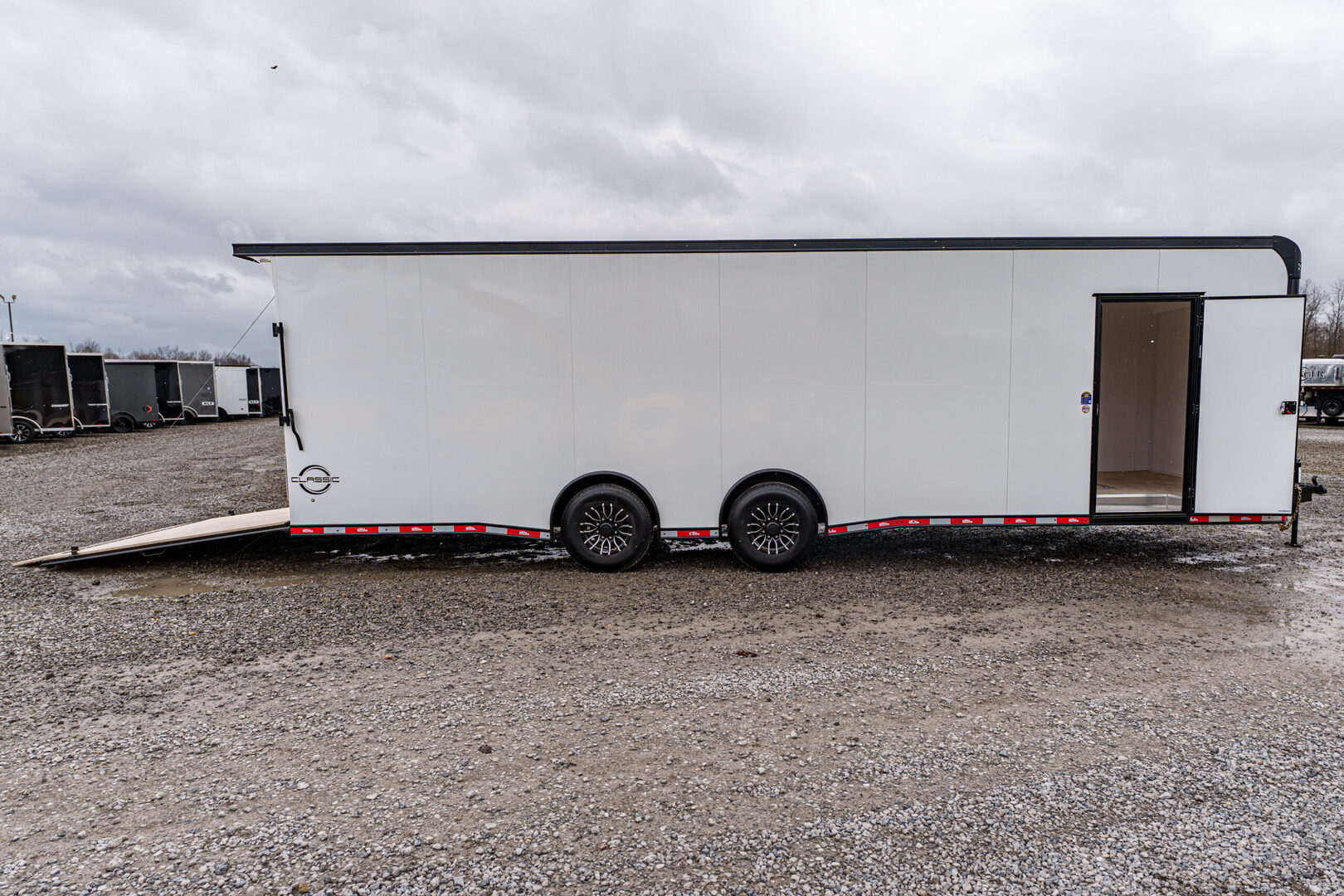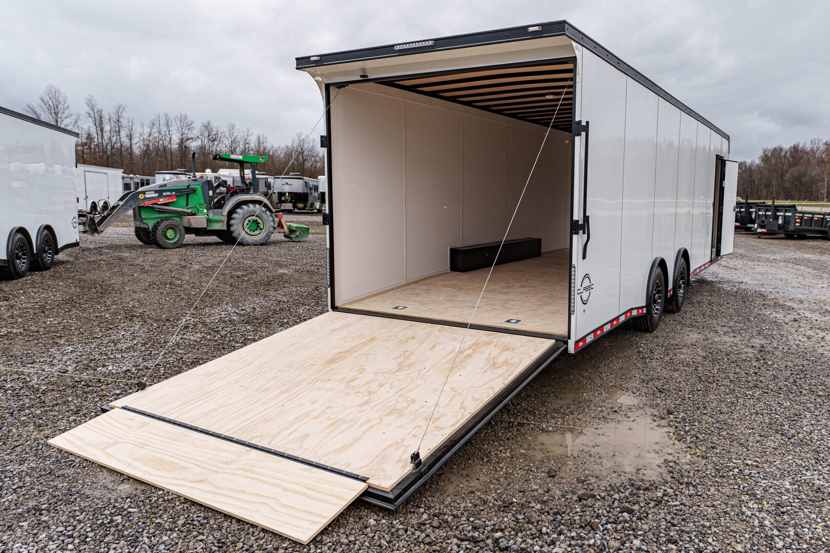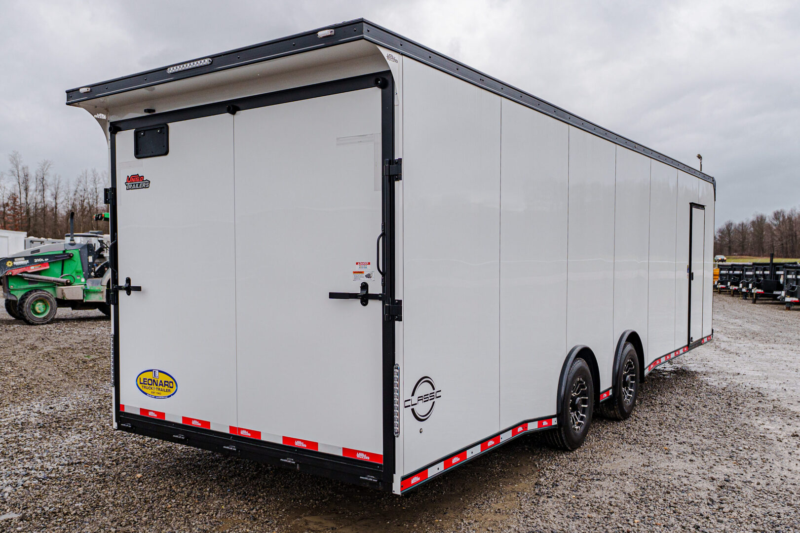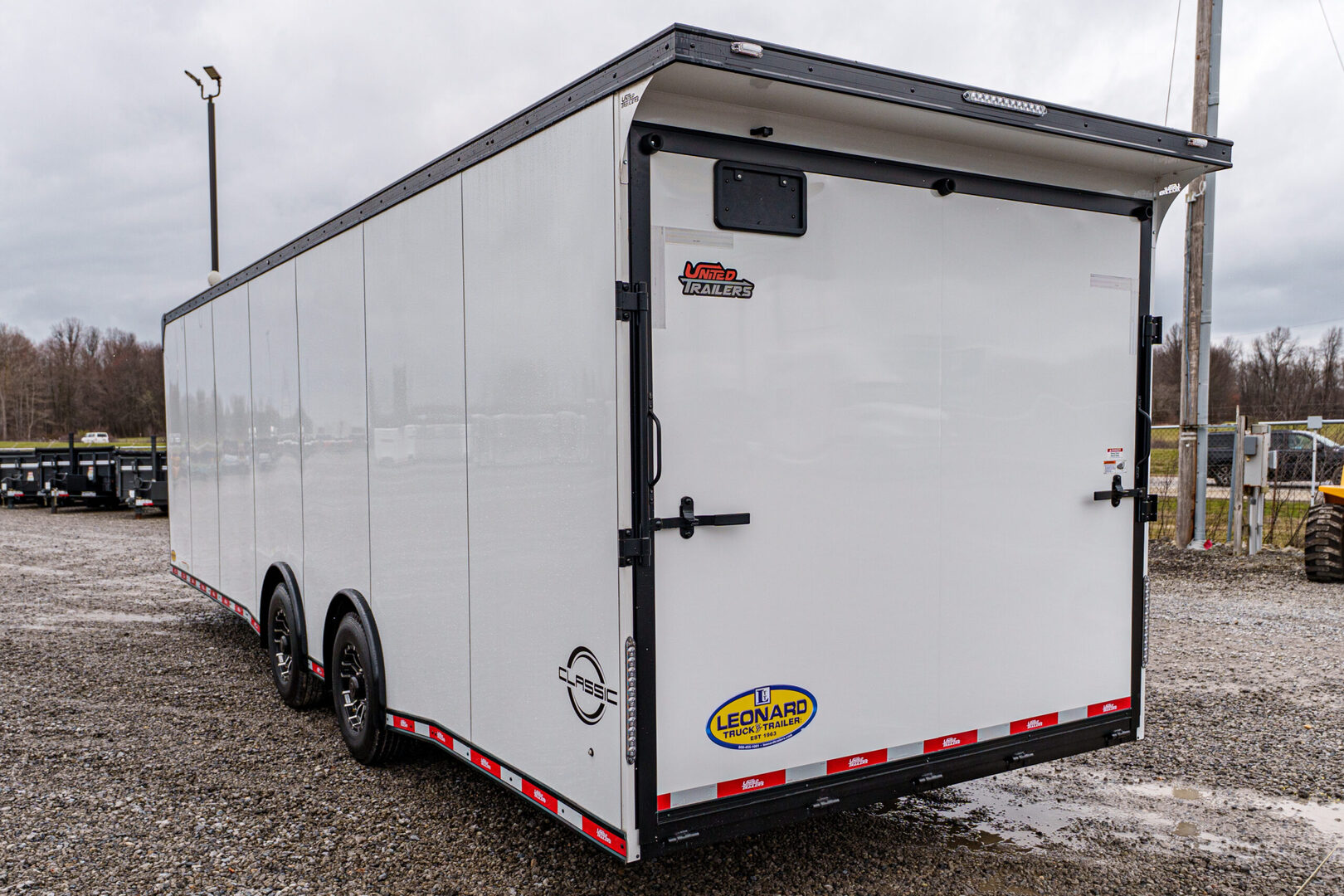 View Inventory: https://leonardtrailers.com/inventory/45853 Stock #45853 โ€“ New 2026 United CLA-8.528TA70 Enclosed Car Hauler Heavy-duty and built for serious hauling, this 2026 United CLA-8.528TA70 features a 7’ interior height, 8” double I-beam frame, and (2) 7,000 lb electric brake axles with a 56” super spread, positioned 5” back from standard for improved towing stability. A beavertail with spring-assisted ramp door allows for easy loading of vehicles, equipment, or motorsports gear. Key Features 8” Double I-Beam Frame 16” O.C. Crossmembers & Roof Tubes Beavertail with Spring-Assisted Ramp Door & Flap ST235/80R16 Load Range G Tires Black & Silver Eagle Aluminum Wheels 2-5/16” 20K Demco Coupler Breakaway Kit with Charger & 7-Way Plug Top Wind Jack with Foot Pad Interior 3/4” Plywood Floor 3/8” White Vinyl Walls (4) Heavy-Duty D-Rings (2) 12V LED Dome Lights with Wall Switch Exterior .030 Smooth White Aluminum Exterior Seamless Aluminum Roof 24” ATP Stoneguard Bright Aluminum Front Wrap Classic Black Trim / Blackout Package Doors Spring-Assisted Rear Ramp Door 32” x 72” RV Side Door (3’ from front) Frame-outs for RV Jump Door and Generator Door 3-Year Limited Warranty We offer outstanding financing options, accept trades, and can arrange nationwide NO HASSLE delivery! Inquire today at (888) 333-6613. We believe these specifications to be accurate. Any discrepancies are unintentional. Please verify all information with a sales associate prior to purchase. Stock Number:45853