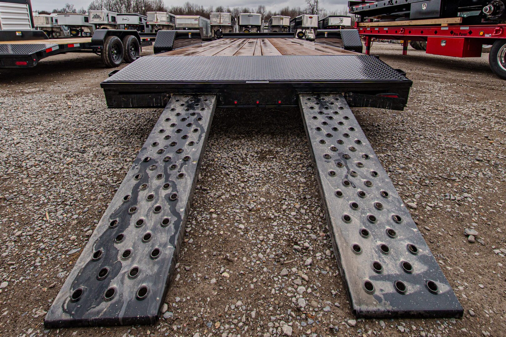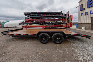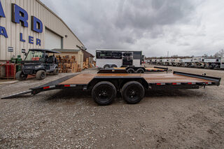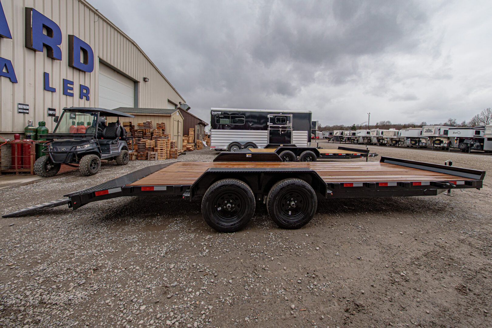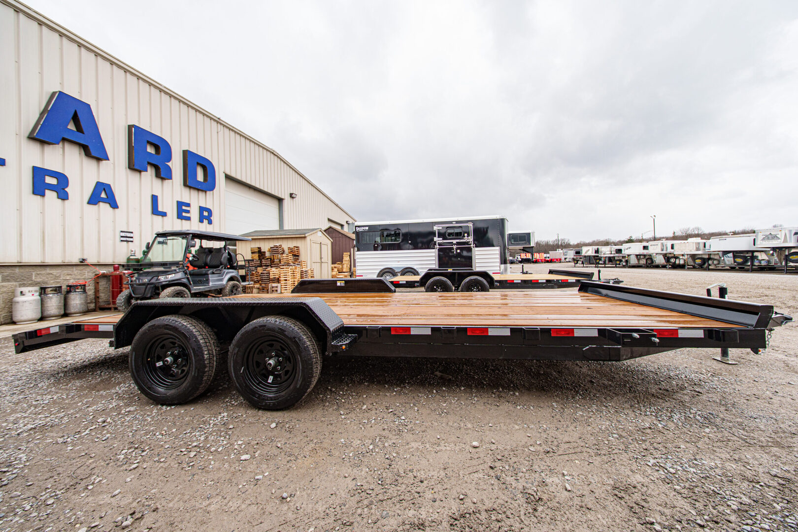 View Inventory: https://leonardtrailers.com/inventory/45855 Stock #45855 – New 2026 H&H 82” x 20’ (18+2) Car Hauler Trailer, 7K Strong and practical, this 82” x 20’ car hauler is built for safely transporting vehicles with reliable features. Key Specs Size: 82” x 20’ (18’+2’ dovetail) Frame: 5” steel channel Crossmembers: 3” steel channel Tongue: 4” steel channel Coupler: 2-5/16” A-frame, Posi-Lock Axles: 2 x 3,500 lb spring brake w/ easy-lube hubs Jack: 2,000 lb set-back Bulkhead: Heavy-duty tube Deck & Loading 2’ steel tread plate dovetail 3” x 66” ladder-style slide-in ramps w/ carrier 2” pressure-treated pine decking w/ board retainers Stake pockets for tie-downs Tires & Wheels ST205/75R15C 6-ply tires 15” 5-hole steel wheels Features & Accessories Double break tread plate fenders DOT-compliant breakaway system (battery, switch, lanyard) Sealed wiring harness w/ 7-pin round plug Full LED exterior lights Spare tire carrier Industrial grade polymer exterior finish Limited 3-year warranty Color: Black A dependable 7K car hauler designed for safe and efficient vehicle transport. We offer outstanding financing options, accept trades, and can arrange nationwide NO HASSLE delivery! Inquire today at (888) 333-6613. We believe these specifications to be accurate. Any discrepancies are unintentional. Please verify all information with a sales associate prior to purchase. Stock Number:45855