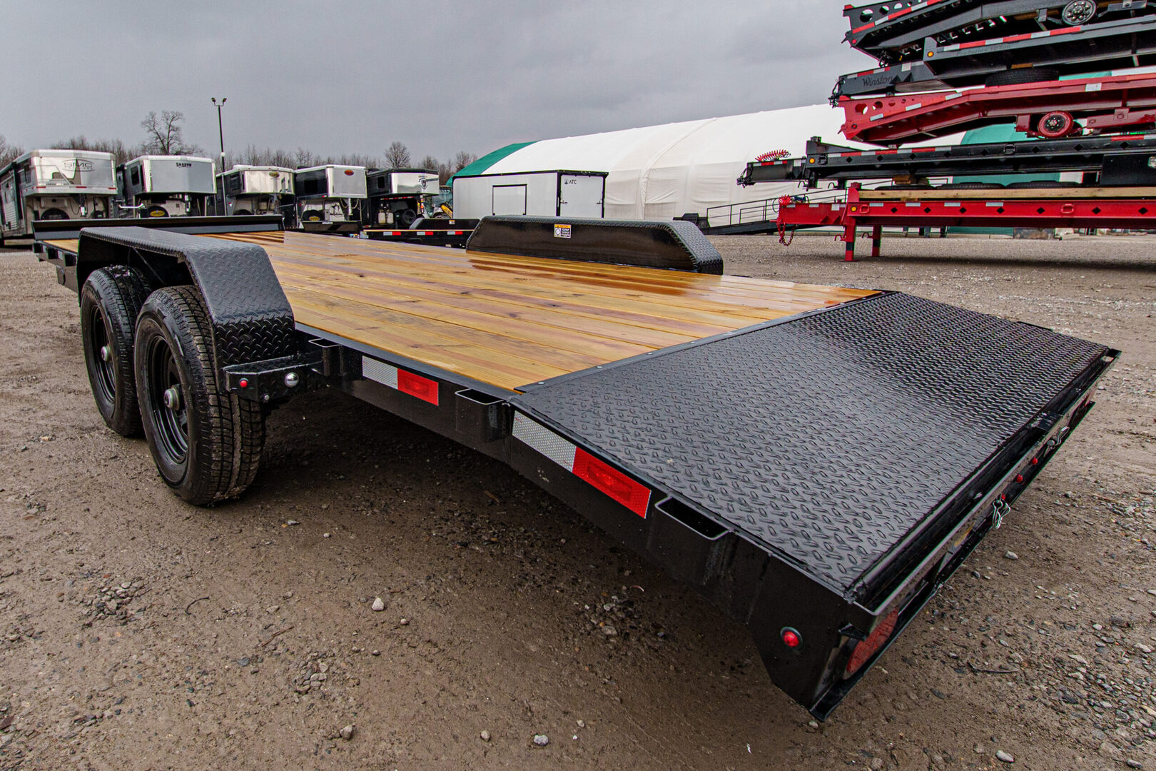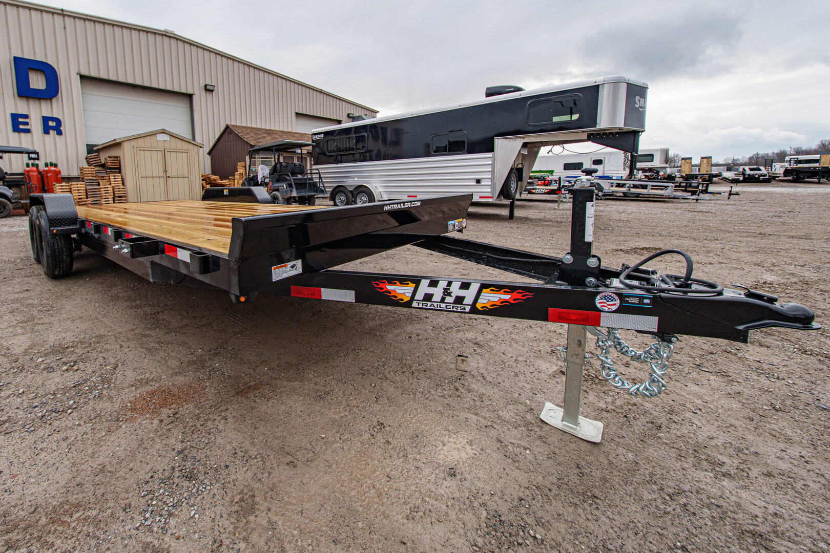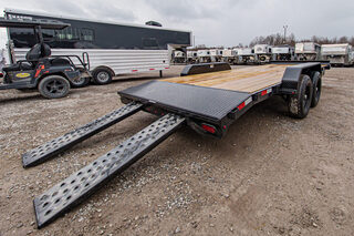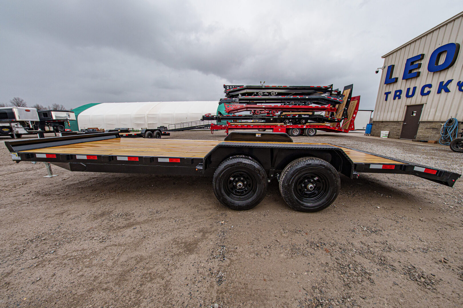 View Inventory: https://leonardtrailers.com/inventory/45862 Stock #45862 – New 2026 H&H 82” x 20’ (18+2) Car Hauler Trailer, 10K Built for durability and convenience, this 82” x 20’ car hauler trailer is ideal for transporting vehicles safely and efficiently. Key Specs Size: 82” x 20’ (18’+2’ dovetail) Frame & Tongue: 5” steel channel, fully wrapped tongue Coupler: 2-5/16” A-frame Axles: 2 x 5,200 lb spring brake w/ easy-lube hubs Jack: 7,000 lb drop leg, set-back Bulkhead: Heavy-duty tube Deck & Loading 2’ steel tread plate dovetail 5’ slide-in steel ramps 2” pressure-treated pine decking w/ board retainers Stake pockets for tie-downs Tires & Wheels ST225/75R15D 8-ply tires 15” 6-hole steel wheels Features & Accessories Double break tread plate fenders DOT-compliant breakaway system (battery, switch, lanyard) Sealed wiring harness w/ 7-pin round plug Full LED exterior lights Spare tire carrier Industrial grade polymer exterior finish Limited 3-year warranty Color: Black A reliable, heavy-duty car hauler designed for safe vehicle transport with user-friendly features. We offer outstanding financing options, accept trades, and can arrange nationwide NO HASSLE delivery! Inquire today at (888) 333-6613. We believe these specifications to be accurate. Any discrepancies are unintentional. Please verify all information with a sales associate prior to purchase. Stock Number:45862