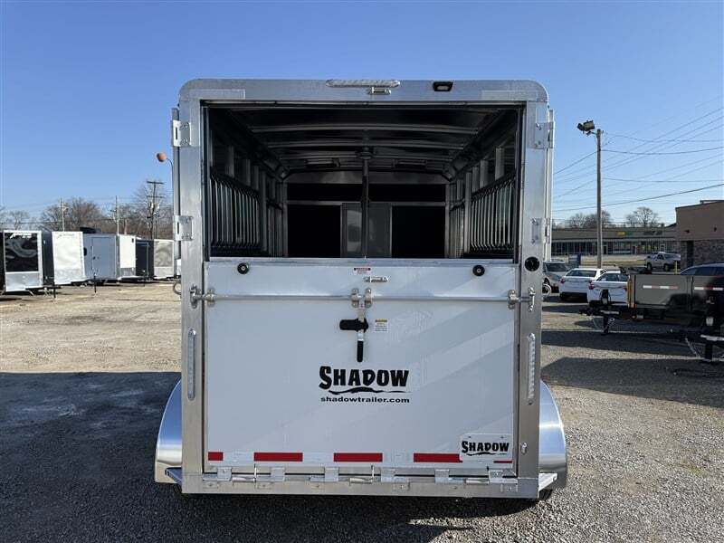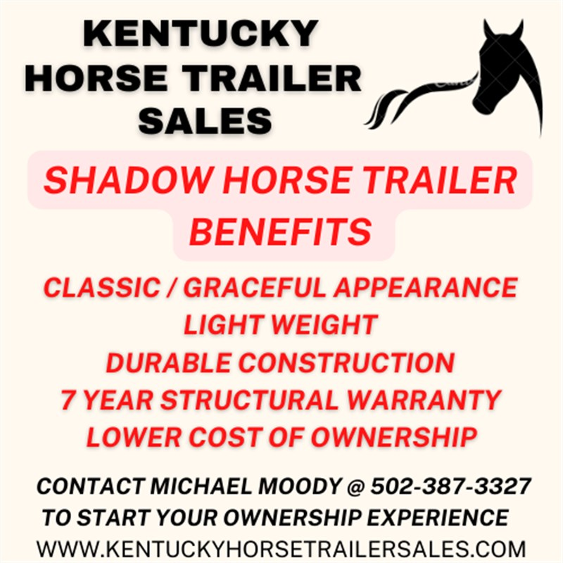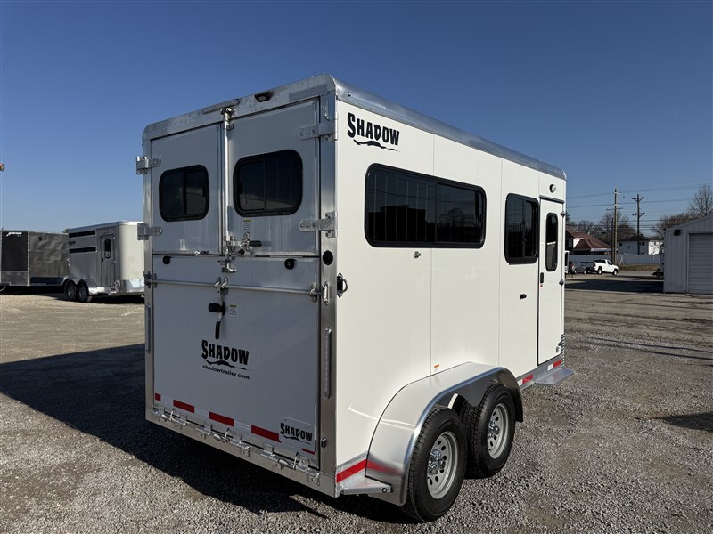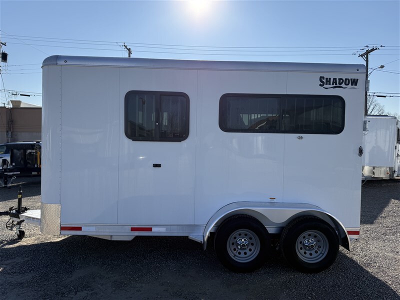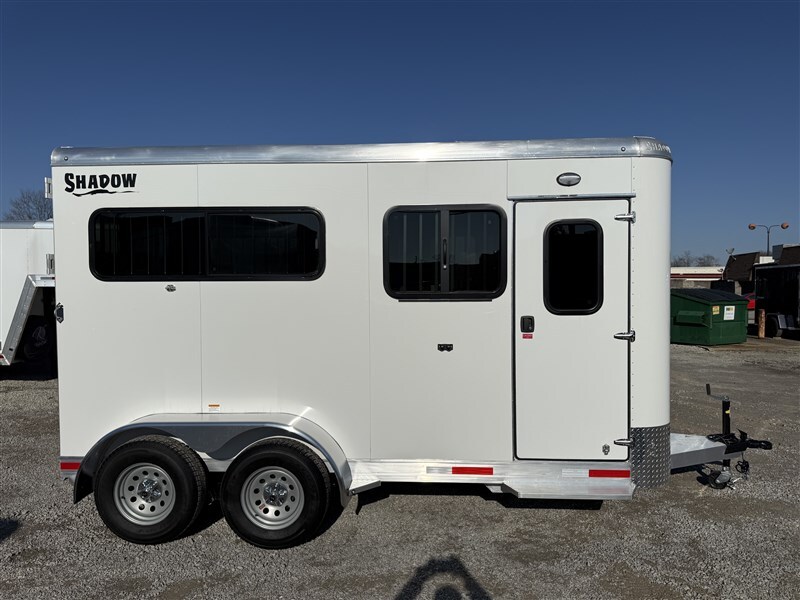 *** IN STOCK & READY TO GO !!! *** 2026 2 HORSE STRAIGHT LOAD !!! *** REAR RAMP !!! *** FRONT TACK ROOM !!! 2026 SHADOW STABLEMATE 2 HORSE STRAIGHT LOAD W/ REAR RAMP / FRONT TACK - 6’9” wide, 7’6” tall, 15’0” long, (2) 3500# axles, load range D 8 ply tires, all aluminum construction, HORSE AREA ACCESS DOOR, drop feed windows at the head side, slider windows at the hips and tails, ROOF VENTS, treated wood floors, rubber floor mats, lower wall linings, front tack / dressing room, bridle hooks, REAR RAMP DOOR, and spare tire / wheel. SHADOW TRAILERS MSRP ---- $26,170 !!! 2024 SUPER SAVINGS PRICE  - $18,865!!! (2) 3500# axles / 2840# empty weight / 2-5/16” hitch Kentucky Horse Trailer SalesAuthorized Dealer of Shadow Horse and Livestock TrailersA Division of Jerry Moody Auto Mart9418 Taylorsville RoadLouisville, Kentucky 40299 Contact: Caleb Bagby 502-780-8351Contact: Michael Moody 502-387-3327 Monday-Friday 9:00AM-4:00PM (EST)Saturday & Sunday ~ Closed Contact: Caleb Bagby 502-780-8351Contact: Michael Moody 502-387-3327Monday-Friday 9:00AM-4:00PM (EST)Saturday & Sunday ~ ClosedNOTE: All prices listed are ’Plus Tax’.Payable by Cash or Cashier’s Check (No personal or business checks).All debit or credit card transactions add 4%.Financing is available.Best Values in Horse Trailers East of the Mississippi River !!!
