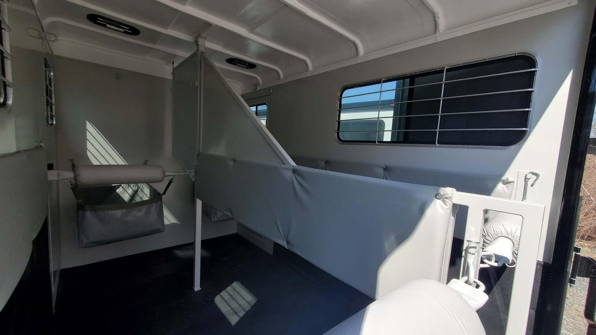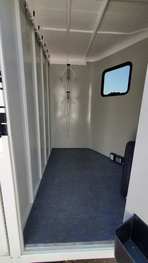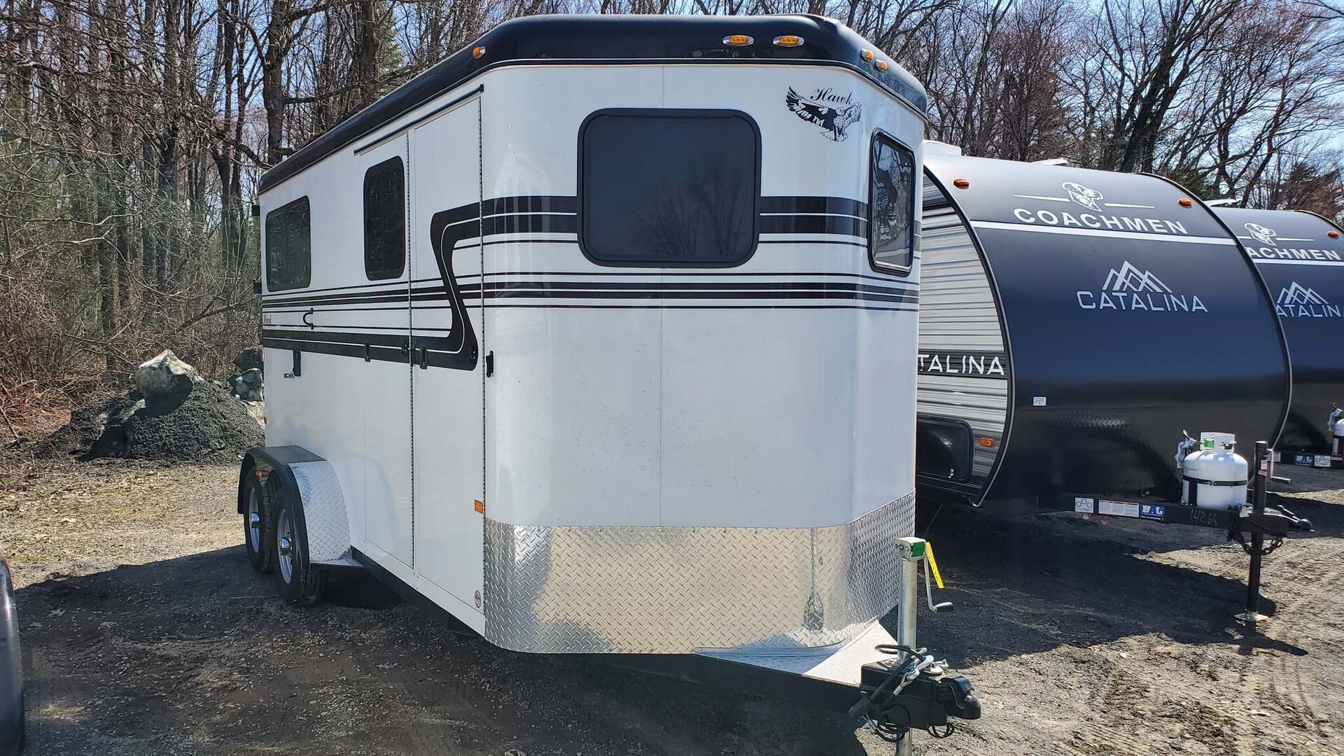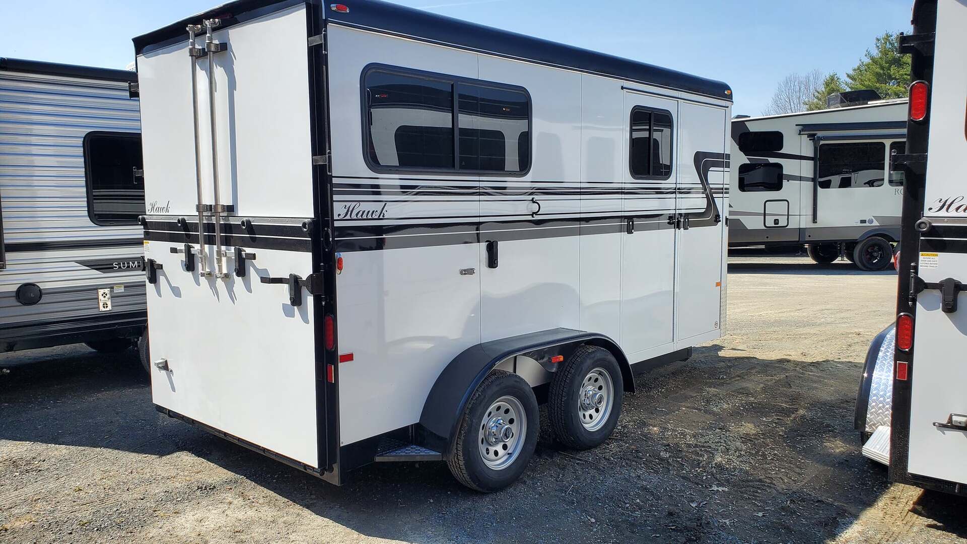 2026 Hawk Model-132 Custom 2-horse bumper-pull horse trailer with dressing room. Extra Tall, Wide, and Long! Galvanized steel construction offers superior corrosion resistance and unmatched safety, value, and strength. Aluminum exterior skins and fiberglass roof and fenders keep temperatures and weight low. Dressing room. Pressure-treated wood flooring. Rear ramp. Custom Package features a simpler option package with room to customize. Feed bags included. Dexter torsion axles. White Exterior. Call today for more information!                 Pricing may not include tax, title, prep, documentation, or freight. Please call for details.