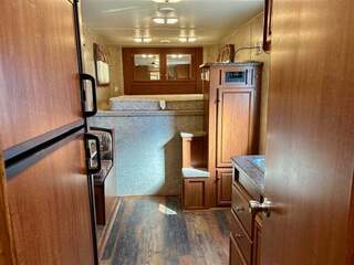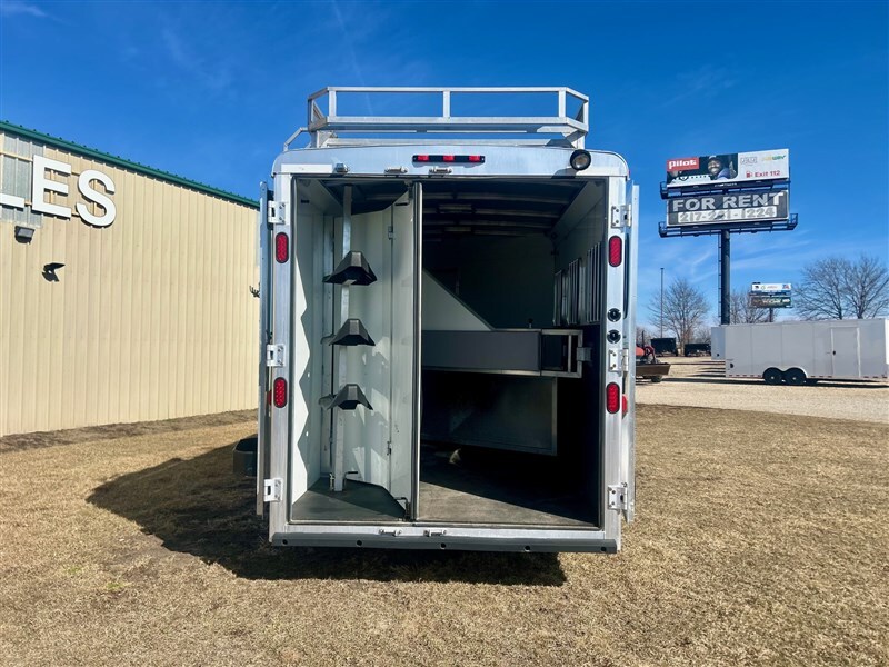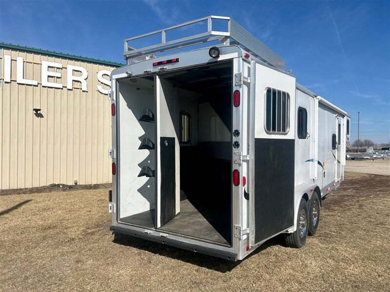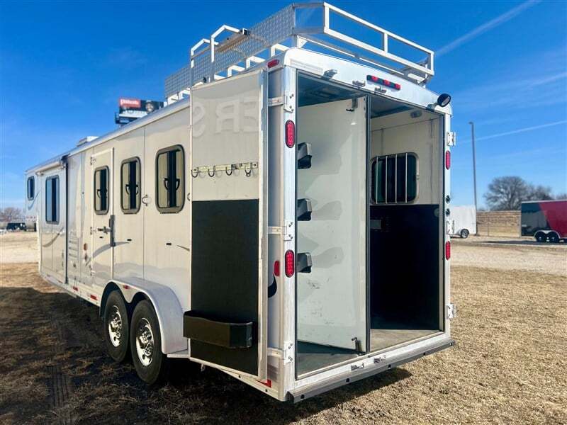 Trailer Details: * All Aluminum Construction * White Exterior * 25’ Floor Length * 33’ Overall Length * 7’ Width * 7’ 6” Interior Height * Single Electric Jack * (2) 7000# Axles & Electric Brakes * ST235/80R16 Tires & 8 Bolt Wheels * Hay Rack Horse Area Details: * Slant Load Dividers w/ Stud Divider * Drop Down Feed Doors * Kick Mats & Floor Mats * Stall Pads * Double Wall * Collapsible Rear Tack w/ Stackable Saddle Rack, Hooks, & Shelf * 60/ 40 Rear Doors Living Quarters: * 10’ Living Quarters * 6’ Slide w/ Dinette * Double Kitchen Sink * Cooktop w/ Range * Microwave * Refrigerator * Bathroom Vanity * Toilet * Shower GVWR 16,847# Sale Price Does Not Include Tax, Registration Fee, License, Freight, & Document Fee. We do not take out of State Checks. No guarantee as to the accuracy of this document is expressed or implied.