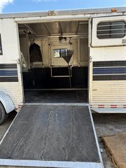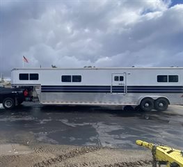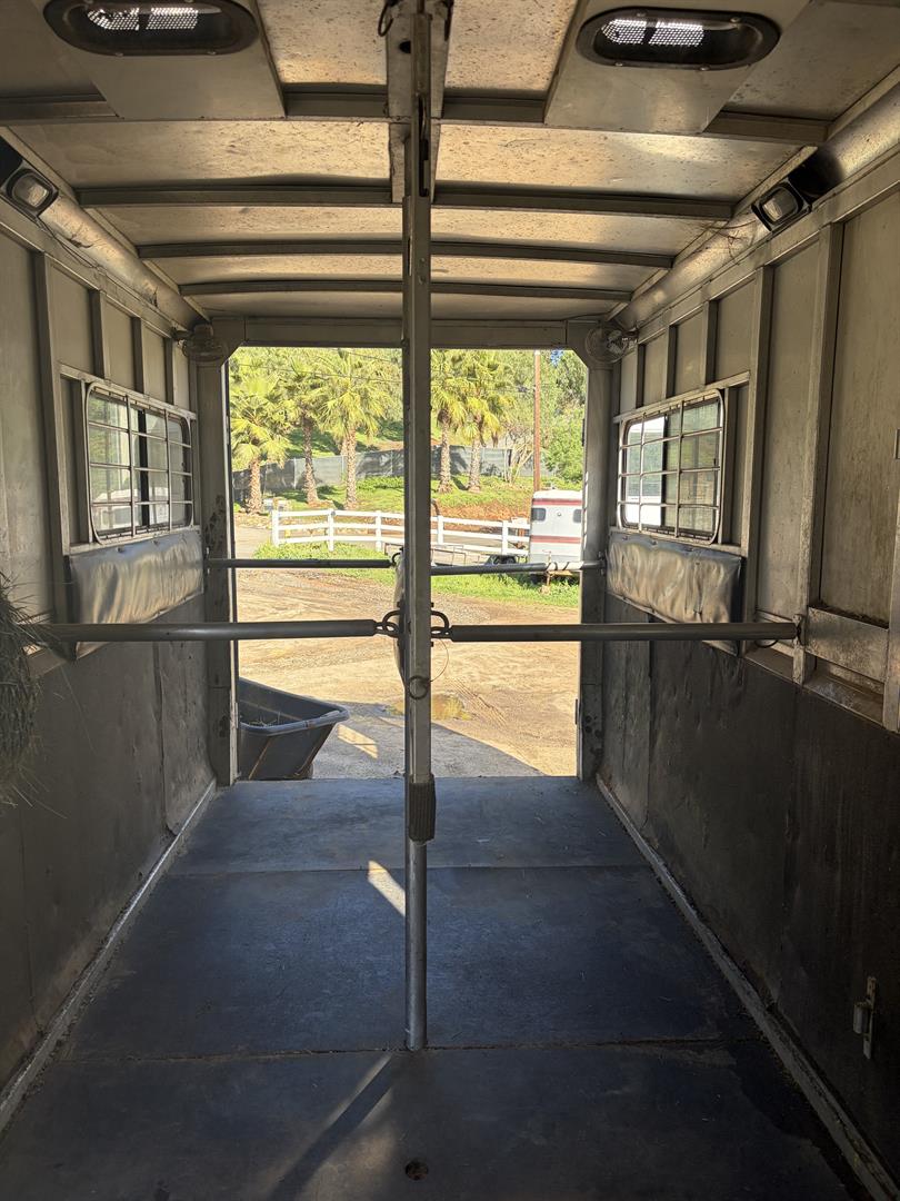 4 horse head to head trailer can fit a 5th in the center. I have all configurations to make 3 box stalls as well. New axels, new paint job, new emergency brake system in the last two years. No accidents. Inside has wear and tear but structurally very sound, needs some new mats (primarily the wall between horses/tack room). Fans all work well. Open to slight negotiations.