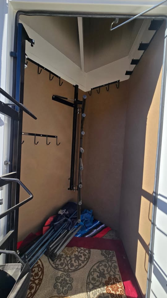 Side tack, swing out saddle rack and swing out pad rack, water tank