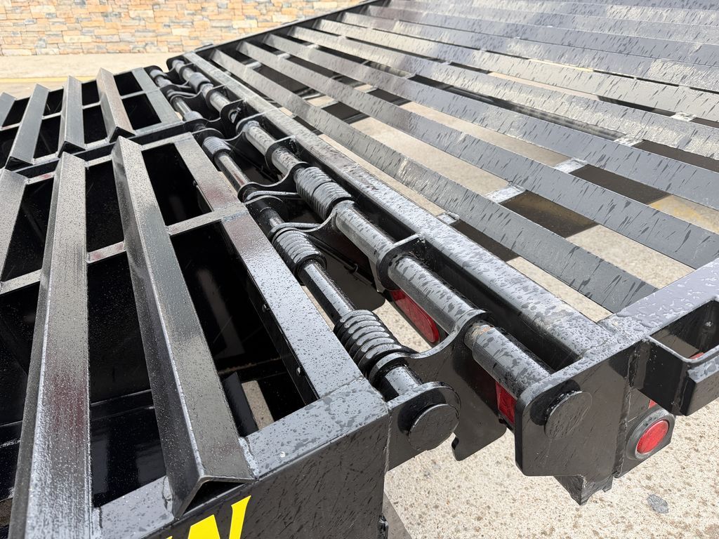 28’+5’ Tandem Axle Gooseneck w/ MEGA Ramps 2 x 8,000 lb. Electric Brake Axles Demco 30K 2 5/16 in Adj. GN Coupler 102 in Overall Width Dual 10K Drop Leg Jack (Bolt On) 12 in I Beam Neck and Frame 3 in Channel Cross Members 5 in Channel w/ 3/8 in HD Rub Rail and Stake Pockets on 24 in Centers ST 235 80 R16 in Load Range E Tires and Wheels Retractable Side Step Jack Protective Step (Sold Step Next to Drop Leg Jack) Black Out Wheel Spare Mount All LED Lights Treated Wood Deck 7 Way RV Plug Black Powder Coated Empty Weight: 6,570 lbs. GVWR: 17,500 lbs. (Can be derated) Carrying Capacity: 10,930 lbs.
