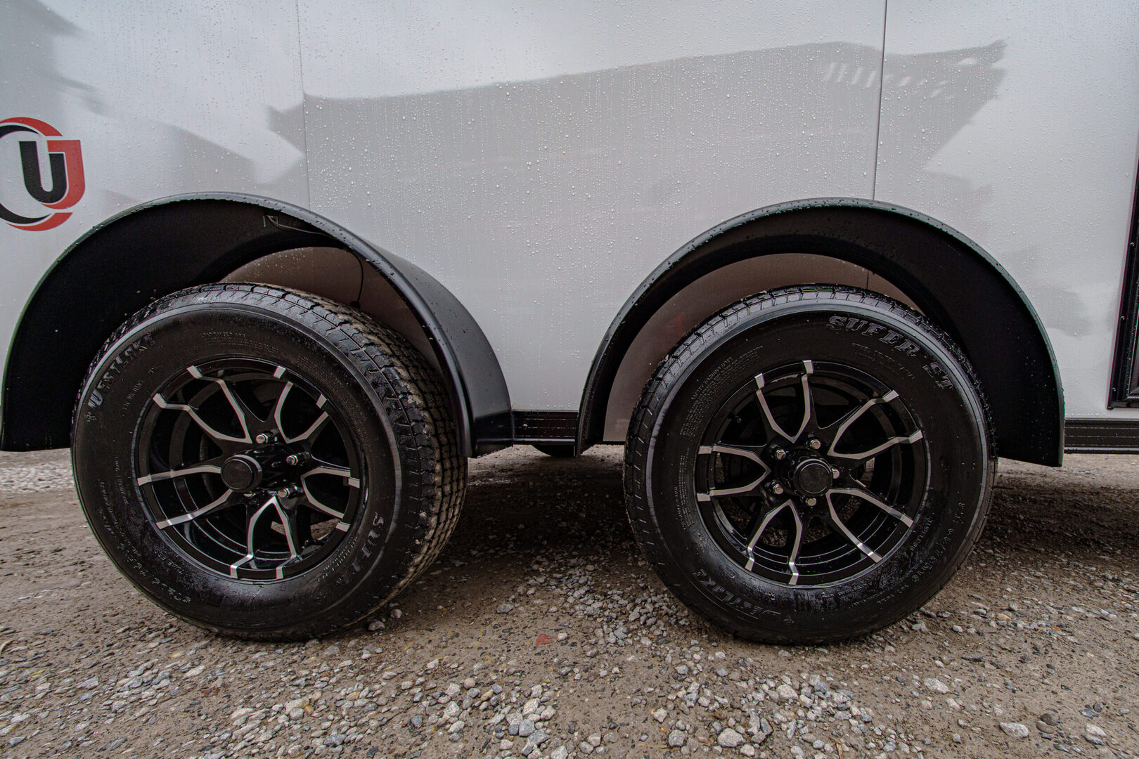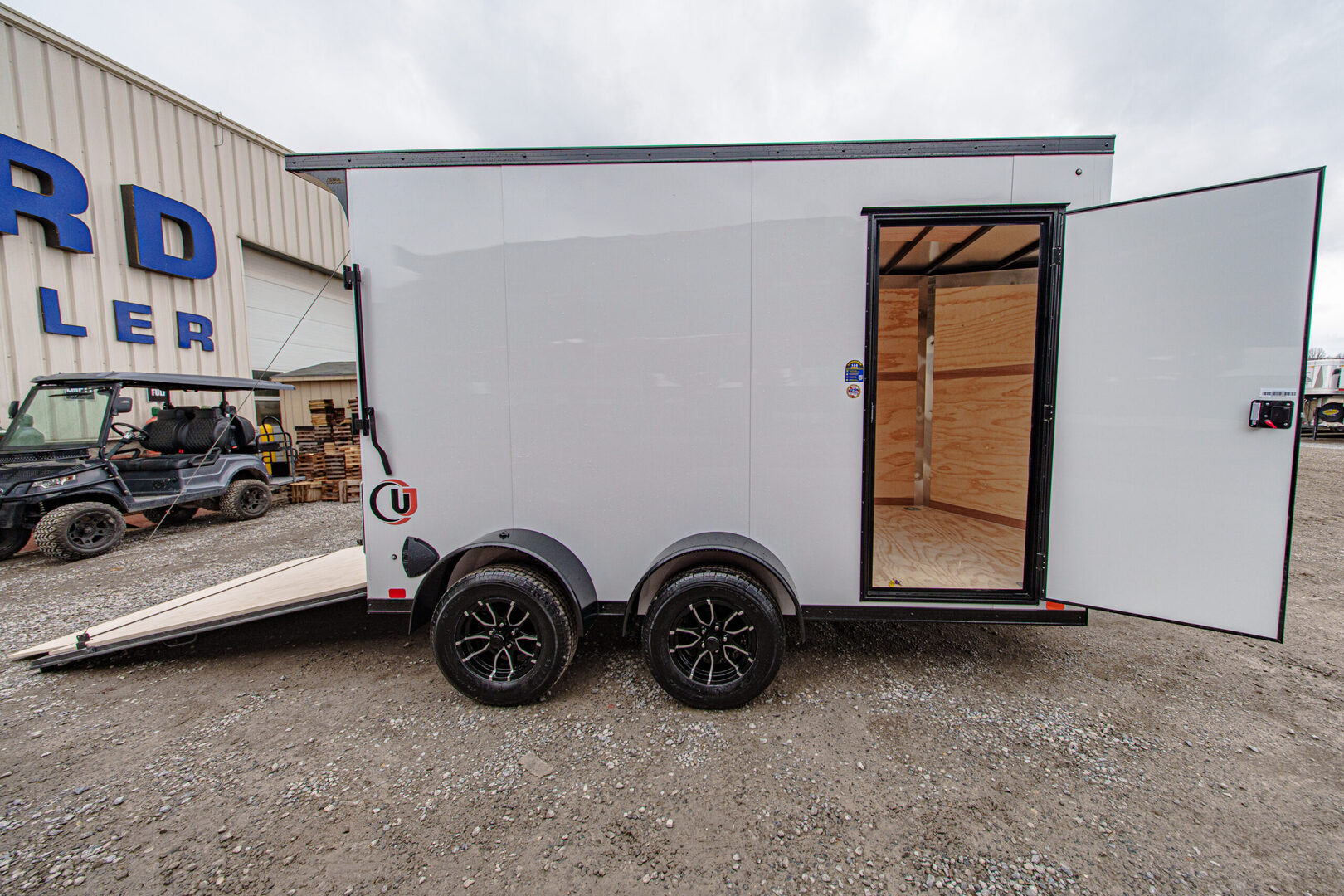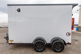 View Inventory: https://leonardtrailers.com/inventory/45982 Stock #45982, New 2026 United UJ-712TA35-8.5 – Enclosed Cargo Trailer Standard Features Height 7’ interior Axle 2 × 3500# Electric Brake Torsion Axles (Dexter), moved back 5” Tandem Spread Axles – 5” spread Tires & Wheels 4 × ST205/75 R15 LRD Westlake on Black & Silver Eagle Aluminum Hitch 7-Way Molded Plug, Breakaway Kit w/ Charger 2 5/16” Coupler, Top Crank Jack w/ Foot Pad 2 Safety Chains, Third Member Tongue Frame & Structure 2” Corner Posts (Pair), Crossmembers 16” O.C. 2 × 4 Tube Frame, 24” V-Nose Slant 4 Heavy Duty D-Rings, Rear Wing – Option Roof Bows 16” O.C., Sidewall Posts 16” O.C. Vents 2 × TSR-175 Sidewall Interior 3/4” Plywood Floor, 3/8” Plywood Wall Liner 4 Heavy Duty Bolt-In D-Rings Electrical (12V) LED Clearance & Tail Lights, Dome Light, 12V Wall Switch Exterior Slant Nose, .030 Smooth Aluminum, ATP Stone Guard 4 × 9” Single Round Fenders, 24” Lauan Roof Strip Rear Wing – Option, Aluminum Seamless Roof, Taped Exterior Doors 2” Corner Posts (Pair), Hold-Back Aluminum Door (Heavy Duty) 32” × 72” RV Door, Rear Ramp Door w/ Plywood Flap & Spring Exterior Finish / Notes 3-Year Limited Warranty WJ Battleship Gray Exterior, WJ 712 Black Trim Black Out Package: all trim, corner caps, stone guard, fenders, door frames, locks, and blackable add-ons blacked out. Extra charges for large items (ATP skirting, ladders, fold-down railings, generator/tool boxes, interior trim) We offer outstanding financing options, accept trades, and can arrange nationwide NO HASSLE delivery! Inquire today at (888) 333-6613. We believe these specifications to be accurate. Any discrepancies are unintentional. Please verify all information with a sales associate prior to purchase. Stock Number:45982