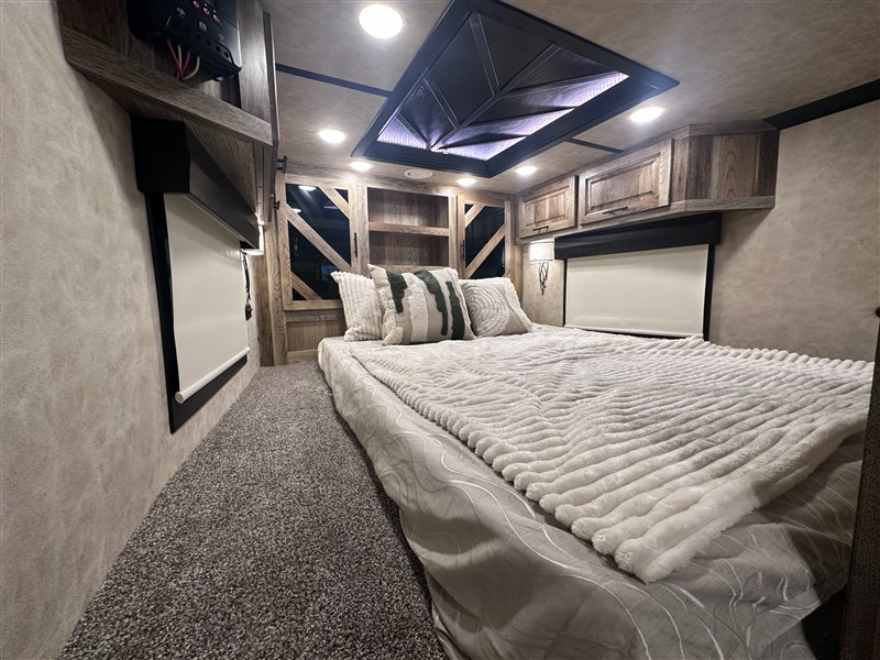 **MSRP: $205,400.00** Trailer Details: * Model: BI8418TCE * All Aluminum Construction * Color: Matte Silver * 8’ Outside Box Width * 8’ 2” Interior Height * 38’ Floor Length * 46’ Overall Length * (3) 7000# Dexter Axles & Electric Brakes * ST215/75R17.5 Tires & Silver Mod Wheels (8) Lugs * Complete Spare Horse Area Details: * 44” Door w/ Side Ramp For Side Load * Rubber Floor Mats * Air Flow Dividers & Stall Pads * (4) Dome Lights & (4) Roof Vents * Feed Doors & Mangers * Drop Down Butt Windows & Butt Fans * Hay pod w/ Platform & Generator Rack * 5.5 Gas Generator w/ Remote Rear Tack Details: * Full Carpeted Rear Tack * (2) Swinging Blanket Bars * (4) Bridle Bars w/ Hooks * (2) Brush Trays * 50/50 Rear Doors Living Quarters Details: * 18’ Living Quarters w/ 12’ Slide Out * Smoked Hickory Cabinets * Arenite Cream Kitchen & Bath * Glazzio Tile Backsplash * Elegance Chocolate Entertainment Recliners * Fireplace * Large Double Bowl Sink w/ Walnut Covers * (2) 13.5 Air Conditioner w/ 50 AMP Service * 320 Watt Solar Panel * 8 CuFt Fridge/Freezer * GVWR: 21,000# * Empty Weight: 15,820# Sale Price Does Not Include Tax, Registration Fee, License, Freight, & Document Fee. We do not take out of State Checks. No guarantee as to the accuracy of this document is expressed or implied.