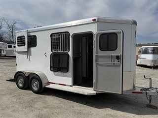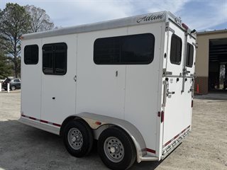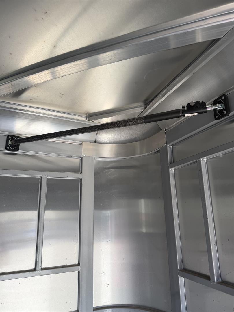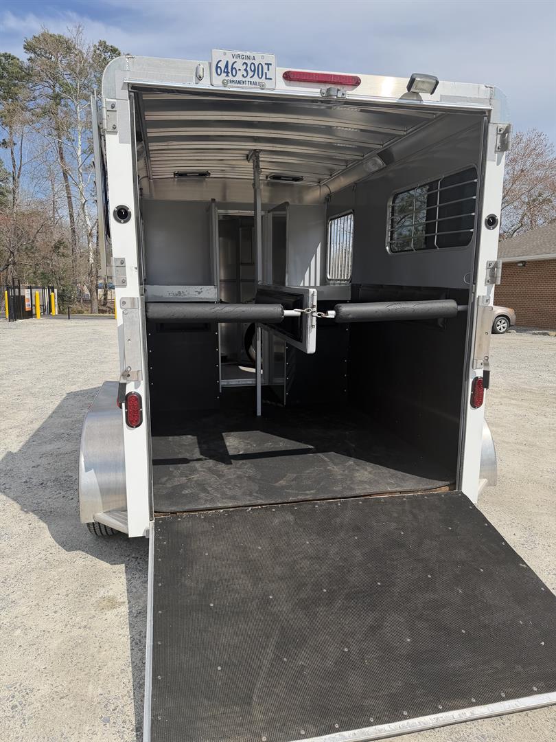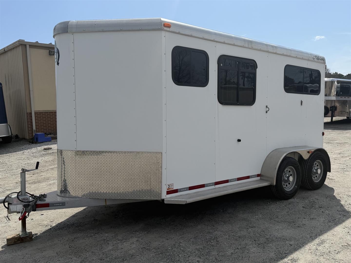 - 4′ dressing room has ample floor space with the saddle racks tucked under the mangers; bridle hooks, spare tire mounted in dresser, walk through door from horse area to dressing room, camper door with screen door