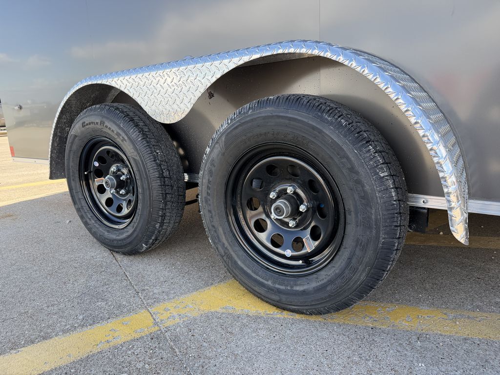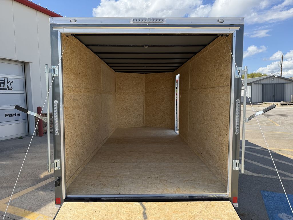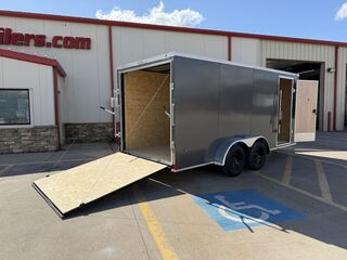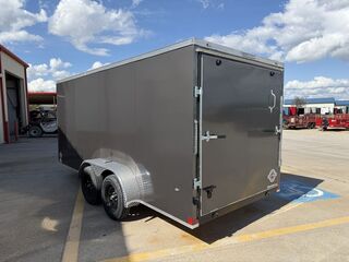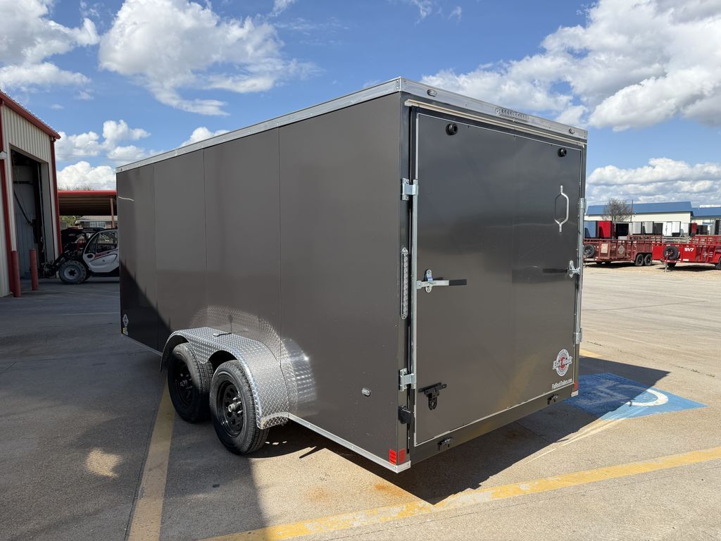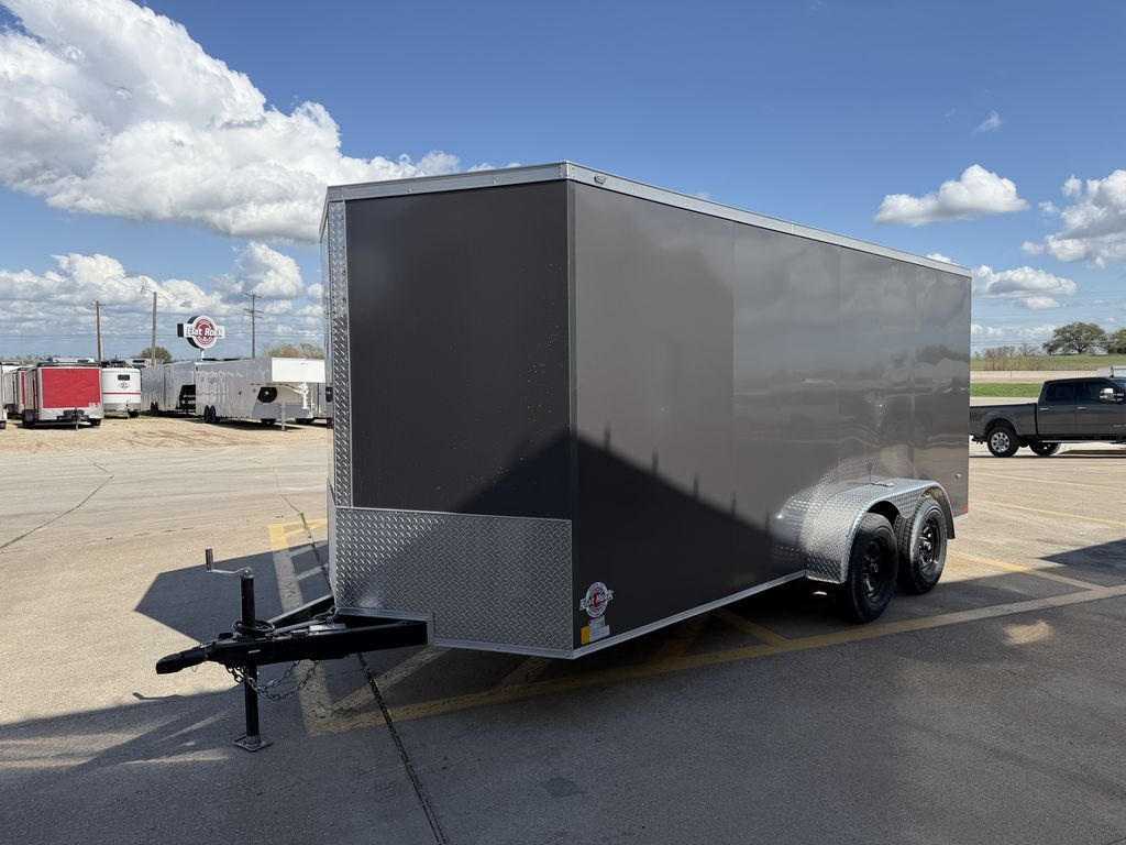 7’ x 16’ CGR 7K Cargo Trailer V Nose 2 x 3,500 lb. EZ Lube Brake Axles Brakes on Both Axles Galvanized Steel Roof Insulated Interior Roof Liner LED Tail Lights 1 Interior Light w/ Switch 2 5/16 in Coupler +/* 6’ 6 in Interior Height .080 Advance Polycore SCREWLESS SIDING ATP Aluminum Fenders 2K Jack ST 205 75 R 15 in Radials Black Mod Wheels Spring Assist Rear Ramp Door 36 in Side Door w/ Cam Bar and RV Locking System 3/4 in Poly Mac Floors 3/8 in Poly Mac Walls on 16 in Centers Flow Through Vent   Empty Weight: 2,260 lbs. GVWR: 7,000 lbs. Carrying Capacity: 4,740 lbs.