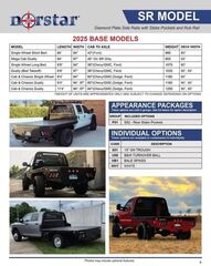 Connecticut Trailers features the following options for this Norstar Truck Bed: • SR 8’6”|97”|56” 2026 Norstar SR 8’6” x 97”One of our best sellers - and for good reason. The Norstar SR model offers everything you need in a flatbed configuration. If you want a little more from this basic configuration, look over our options list. We have underbody locking tool boxes for additional storage and gooseneck troughs for a towing upgrade, spare tire mounts for the unexpected and a list of other options to personalize your bed for your home or business needs.The standard 2.5” receiver allows you to add a hitch for bumper pull cargo and a 2 5/16” gooseneck ball is standard in case you are hauling a heavyweight. Our receivers are lab tested and certified for 18,500 lbs bumper capacity and 30,000 lbs gooseneck capacity. Durable diamond plate construction and powder coat will make this bed your most faithful assistant for years to come. Tapered corners, 7 way plug with 4 way adapter and recessed 2 5/16” ball and receiver hitch give you a towing package standard. Exposed stake pockets and rub rail ensure you have tie down points for any load, plus the LED lights are standard on all SRs. Full 11 gauge skirted rear bumpers finish off every model as an additional standard feature.Features may include:Structural Steel Frame2.5” 18.5k Rated Bumper Receiver30k Rated 2 5/16” Gooseneck Ball4” Runner ChannelsFormed 3 x 3/16” Channel Cross MembersSteel Tube Head Rack with Cross Bars, Tail and Reverse LightsSteel 1/8” Diamond Plate FloorBuilt-In Gooseneck Well w/ Ball Mounted and Diamond Plate LidAngled Fuel Filler Neck and DEF Ready1/8” Diamond Plate ConstructionReceiver Hitch Ready7 Way Plug in Gooseneck BoxPowder Coated Black2.5” LED Reflective Marker Lights4 Clear 6” Oval LED Reverse Lights6 Red 6” Oval LED ST/TL/TN LightsSingle LED License Plate LightAll Lighting DOT ApprovedMolded Sealed Harness with Resistors7 Way Receiver Female Plug with ADAPTER11 Ga Skirted Rear BumperAdjustable Mud Flap Brackets