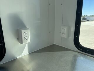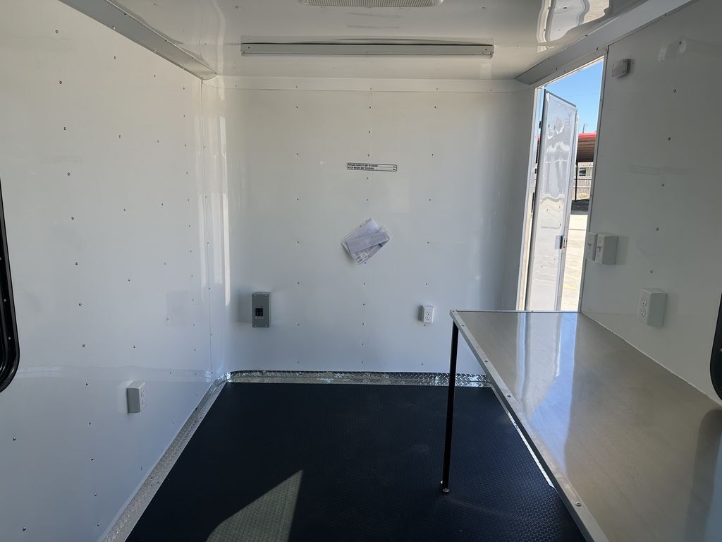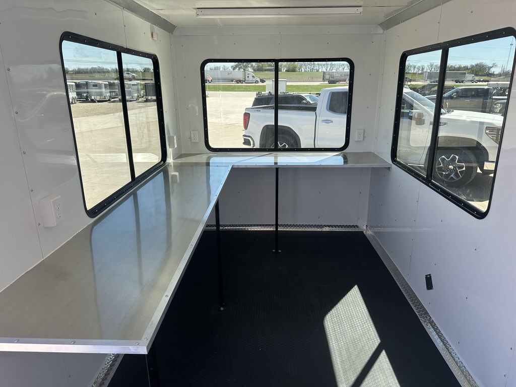 7’ x 14’ Tandem Elite Office Trailer 2 x 3,500 lb. 4 in Drop Brake Axles Triple Tongue 7’ Interior Height 13,500 BTU Air Conditioner 2 5/16 in Coupler 205/75/R15 Black Mod Wheels 36 in Side Door with Cam Bar Lock and RV Lock Rubber Coin Floors 3, 3 ’x 5’ Viewing Windows L Shaped Interior Counter Aluminum Interior Walls and Ceiling (Insulated on 16 in Centers) 2 x12 Volt LED Dome Lights w/ Switch 2 x 4’ Lights w/ Switch (110) 5 Interior Plugs (110) 30 AMP Electrical Package with Cord Empty Weight: 2,000 lbs GVWR: 7,000 lbs Carrying Capacity: 5,000 lbs