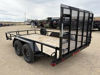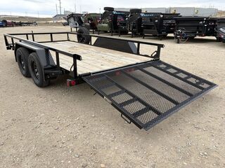 2” x 3” Angle Frame2 - 3,500 Lb Dexter Spring Axles (1 Elec FSA Brake)ST205/75 R15 LRC 6 Ply. (BLACK WHEELS)Coupler 2” A-Frame CastTreated Wood FloorDiamond Plate Fenders (weld-on)4’ Fold In Gate Tubing w/Exp. Metal24” Cross-MembersJack 2000 lb.Lights LED (w/Cold Weather Harness)4 - Corner Tie DownsSq. Tube Side Rails (weld on)Spring Assist on Fold GateSpare Tire ST205/75 R15 LRC 6 Ply. 5-Hole (BLACK WHEEL)4 - Additional Stake PocketsSpare Tire MountBlack (w/Primer)