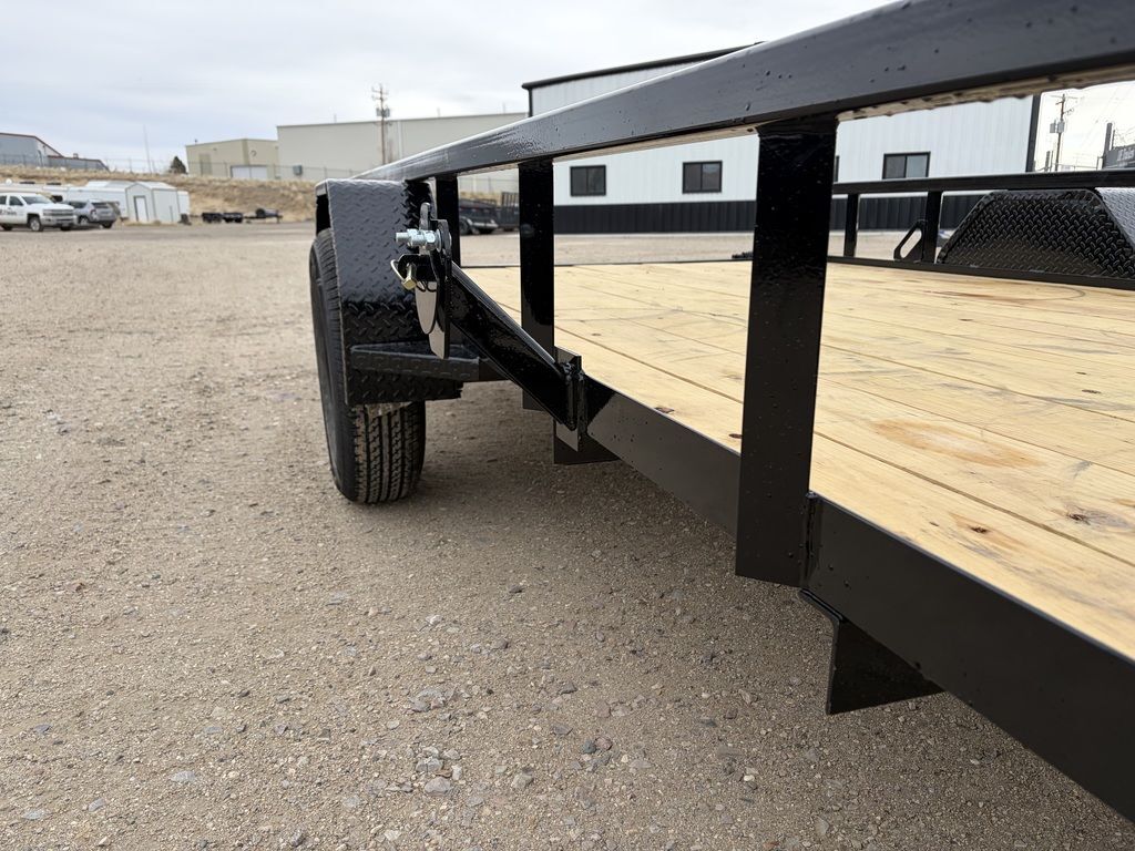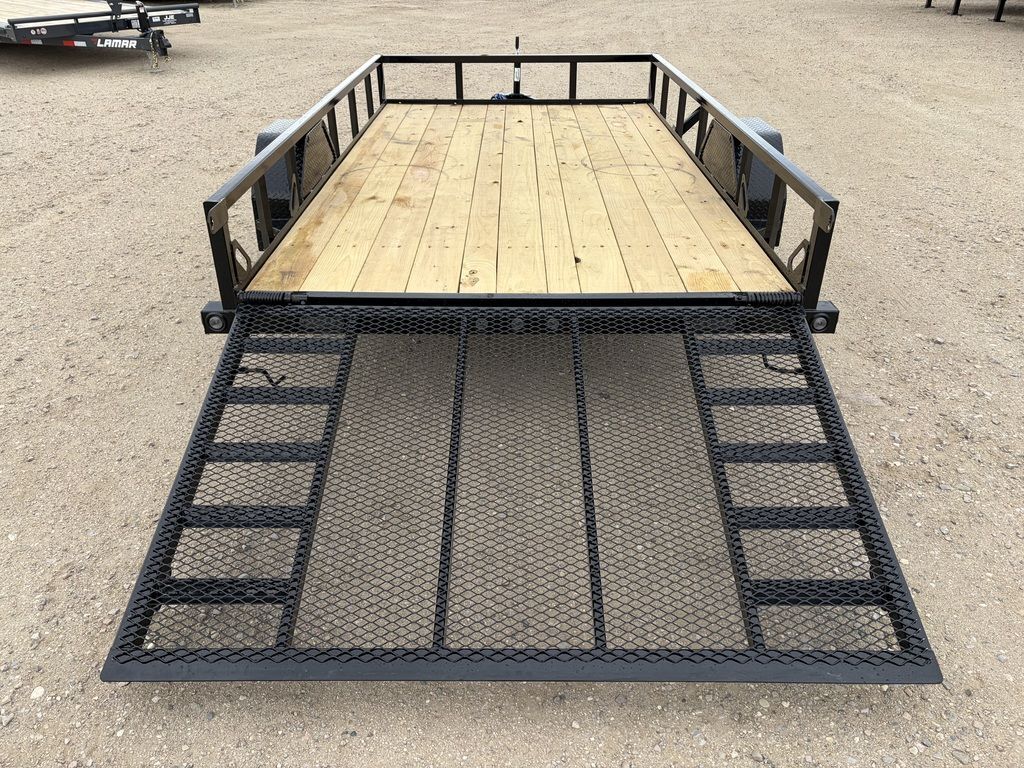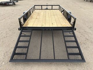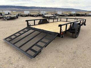 1 - 3,500 Lb Dexter Spring (1 Idler Axle)ST205/75 R15 LRC 6 Ply. (BLACK WHEELS)Coupler 2” A-FrameTreated Wood FloorStandard Deck (non tilt)4’ Fold In Gate Tubing w/Exp. Metal24” Cross-MembersJack 2000 lb.Lights LED (w/Cold Weather Harness)6 - Corner Tie DownsSq. Tube Side Rails (weld on)Spring Assist on Fold GateSpare Tire MountRobot WeldBlack (w/Primer)