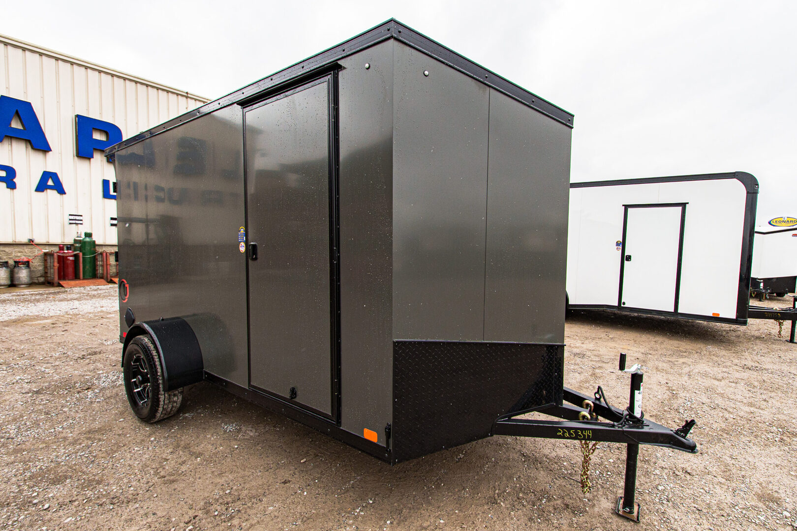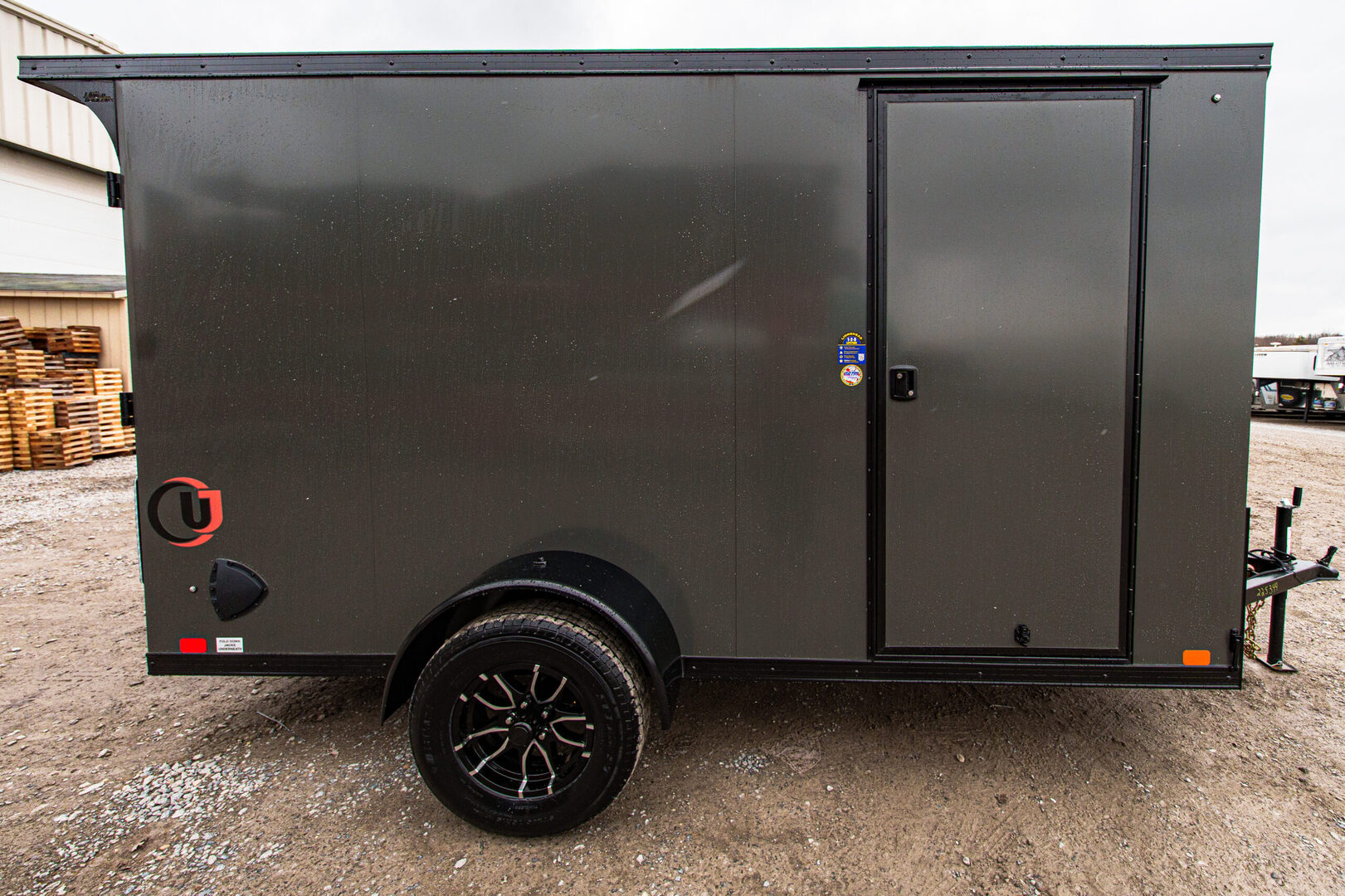View Inventory: https://leonardtrailers.com/inventory/46040 Stock #46040, New 2026 United UJ-612SA30 – Enclosed Cargo Trailer Standard Features Height 6’6” interior Axle 1 × 3000# Idler Torsion Tires & Wheels 2 × ST205/75 R15 LRD Westlake on Black & Silver Eagle Aluminum Hitch 4-Way Flat Plug, 2” Coupler, Top Crank Jack w/ Foot Pad, 2 Safety Chains, Third Member Tongue Frame & Structure Rear Wing – Option, 2 × 2” Corner Posts, Crossmembers 16” O.C., 24” V-Nose Slant Frame 4 Heavy Duty D-Rings, 2 Fold-Down Stabilizer Jacks, Roof Bows 16” O.C., 3” Tube Frame, Sidewall Posts 16” O.C. Vents 2 × TSR-175 Sidewall Interior 3/4” Plywood Floor, 3/8” Wall Liner, 4 Bolt-In Heavy Duty D-Rings Electrical (12V) LED Clearance & Tail Lights, Dome Light, 12V Wall Switch Exterior Slant Nose, .030 Smooth Aluminum, ATP Stone Guard, 2 × 10” Round Fenders 24” Lauan Roof Strip, Seamless Aluminum Roof, Taped Exterior Metal Doors 2” Corner Posts (Pair), Hold-Back Aluminum Door, 32” × 72” RV Door, Rear Ramp w/ Plywood Flap & Spring Exterior Finish / Notes 3-Year Limited Warranty, WJ Battleship Gray, UJ 612 Black Trim w/ Black Out Package (all trim, corner caps, fenders, doors, locks, and blackable add-ons blacked out; extra charges for large items) We offer outstanding financing options, accept trades, and can arrange nationwide NO HASSLE delivery! Inquire today at (888) 333-6613. We believe these specifications to be accurate. Any discrepancies are unintentional. Please verify all information with a sales associate prior to purchase. Stock Number:46040