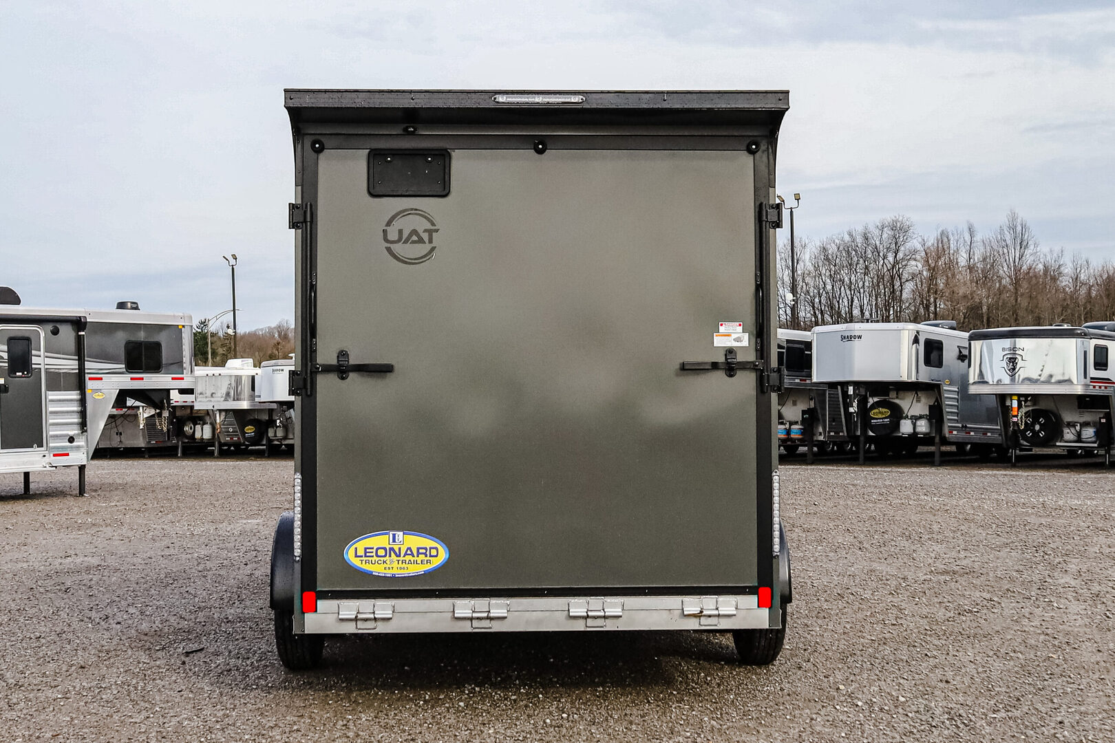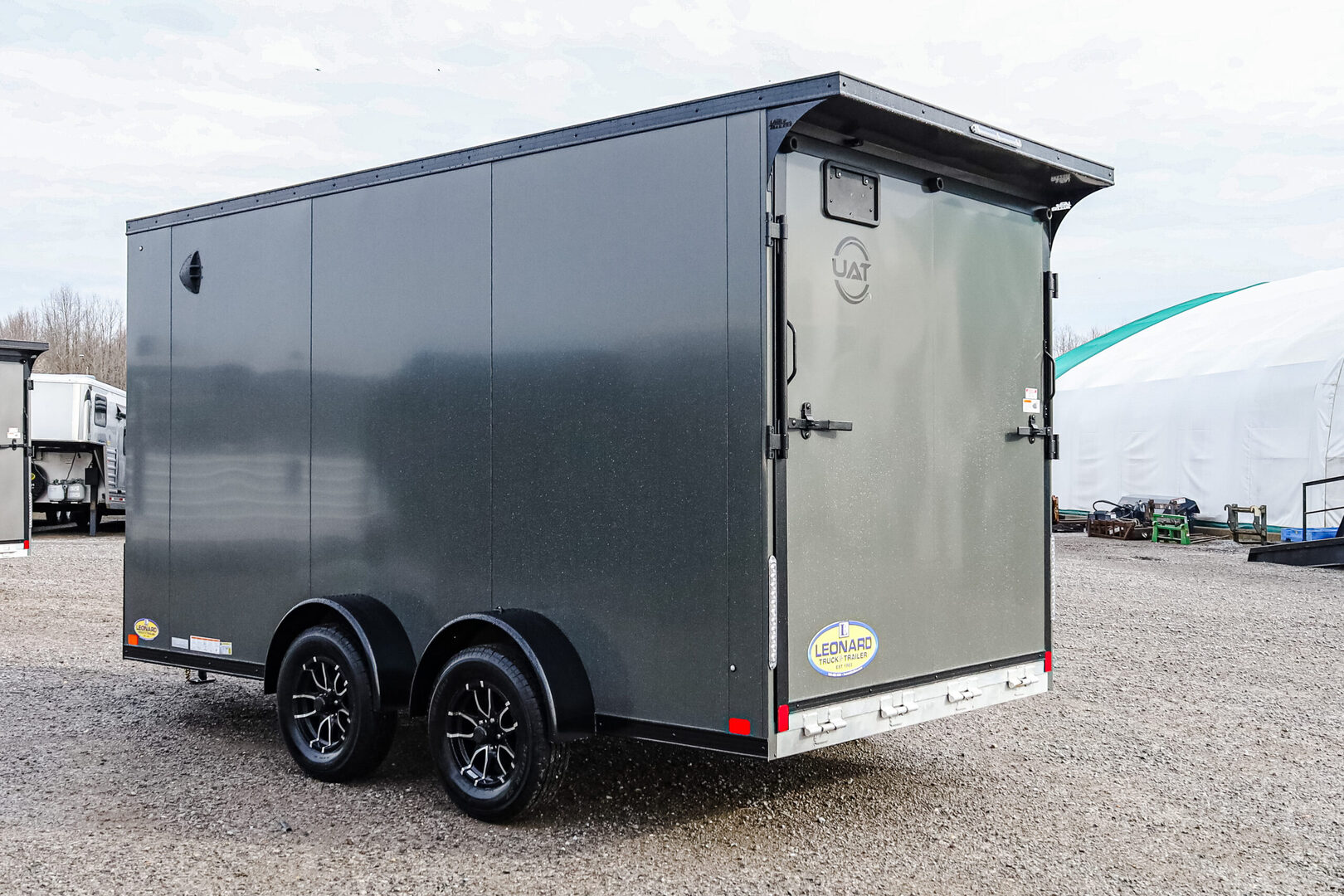 View Inventory: https://leonardtrailers.com/inventory/46074 Stock #46074 – 2026 United UATV-714TA35-8.5 Enclosed Trailer Built for more capacity and versatility, this tandem axle United UATV trailer is perfect for hauling multiple ATVs, UTVs, motorcycles, or equipment. With a full blackout package and durable aluminum construction, it’s designed to perform and look sharp doing it. Key Specs Size: 7’ x 14’ Interior Height: 7’ GVWR: 7,000 lbs Axles: (2) 3,500 lb torsion axles with electric brakes Spread Axles: 5” spread Frame: 2” x 5” aluminum main rails Crossmembers: 16” on center Roof Bows & Walls: 16” on center construction Exterior Features Slanted V-nose with 24” front .030 Battleship Gray aluminum exterior Blackout package (trim, fenders, accents) Aluminum seamless roof Slant-cut ATP stone guard Rear wing (4) 9” round fenders 4” bottom molding Lauan strip down center of roof Interior Features 3/4” plywood floor 3/8” plywood wall liner (4) Heavy-duty 5,000 lb D-ring tie-downs (2) 12V interior dome lights Doors & Access Rear ramp door with flap 32” x 72” RV side door (curbside) Heavy-duty aluminum door hardware with holdbacks Electrical LED clearance and tail lights LED exterior tail lights with chrome rings 12V wall switch (2) sidewall vents (TSR vents for airflow) Hitch & Chassis 2 5/16” coupler 7-way plug Breakaway kit with charger Top-wind jack Safety chains Reinforced tongue with third member Wheels & Tires ST205/75R15 Load Range D tires Aluminum Eagle wheels (black & silver) Additional Info 3-Year Limited Warranty Lightweight aluminum construction = easier towing + no rust We offer outstanding financing options, accept trades, and can arrange nationwide NO HASSLE delivery! Inquire today at (888) 333-6613. We believe these specifications to be accurate. Any discrepancies are unintentional. Please verify all information with a sales associate prior to purchase. Stock Number:46074