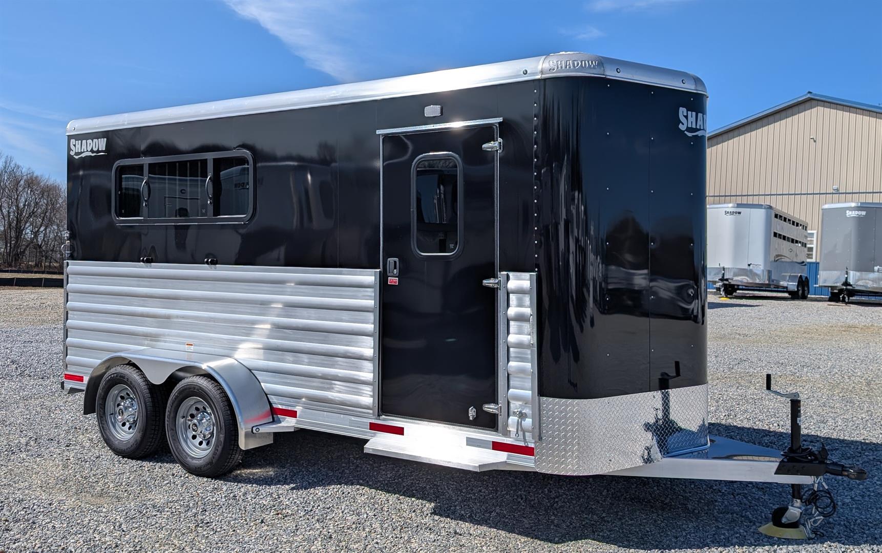The Premer Series comes standard at 7'6 tall x 6'9 wide with full sided Commercail Grade Extrusion, windows everywhere, roof vents fans, padded dividers, 50/50 rear doors. folding rear tack with saddle racks and bridle hooks, interlocking aluminum, floor, nation-wide seven year structural warranty. two years free roadside assistance and much more!