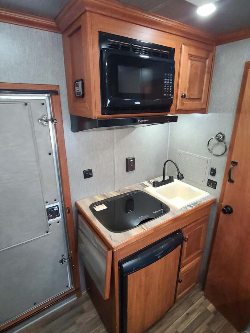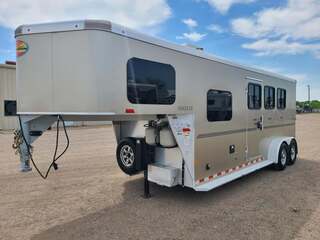 2020 Sundowner Santa Fe 3 Horse 6’6” LQ 6’9” wide x 20 long x 7’6” tall Single leg hydraulic jack Power awning 72” Sofa Sleeper 13,500 BTU A/C  16,000 BTU furnace 6 gallon water heater 3.0 propane / electric refrigerator Microwave oven over two burner cooktop Stainless kitchen sink Toilet in front of shower 24 x 32” shower 24” walk through door to horse compartment Insulated roof in horse compartment Fans in horse compartment Escape door on first horse Stud divider on first stall Flow through dividerss Collapsible rear tack Full width spring loaded rear ramp Fully checked out and ready to go!!