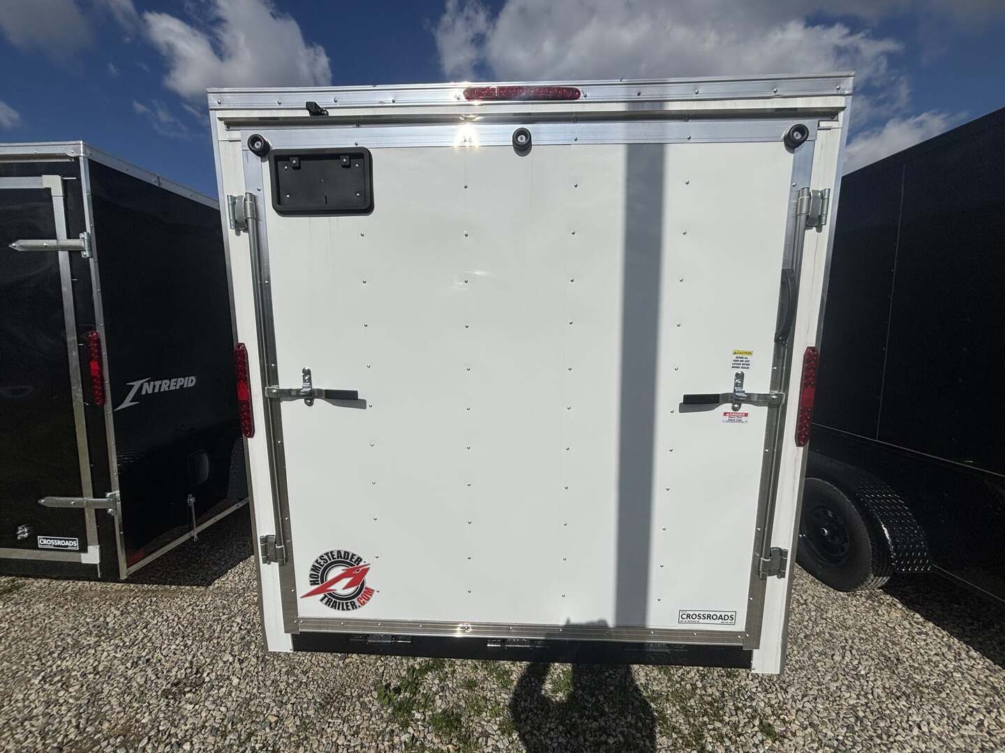 2026 Homesteader Intrepid 714 Cargo Trailer — New Arrival, In Stock Meet the 2026 Homesteader Intrepid 714 enclosed cargo trailer, a new arrival designed for durability and versatility. This 7 feet 0 inches wide by 14 feet 0 inches long trailer is ideal for hauling equipment, tools, or recreational gear with confidence. Featuring a rugged aluminum exterior over a steel frame, it’s built to endure demanding work days and weekend adventures alike. The Intrepid includes LED lighting for clear visibility, a reinforced ramp door for easy loading, and a spacious interior that makes organization simple. This unit is in stock now (Stock #6806) as part of our new arrival inventory. Key Specifications and Build Dimensions and weight details ensure you know exactly what you’re getting: Floorplan: 7 feet 0 inches wide by 14 feet 0 inches long Exterior color: White Aluminum Dry weight: 2,190 pounds Payload capacity: 4,810 pounds GVWR: 7,000 pounds Axles: 2 Hitch: Bumper Pull Construction: Aluminum with Steel Frame Enclosure: Enclosed cargo trailer Interior Space and Practical Benefits Designed for versatility, the 714 Intrepid provides ample interior space to accommodate equipment, tools, or recreational gear. The enclosed design protects cargo from weather, dust, and road debris, while the durable ramp door handles frequent loading and unloading with ease. Whether you’re on the job site, at the trailhead, or moving gear between locations, this trailer delivers reliability and peace of mind. Why this trailer fits your needs As a new arrival to the lineup, this Homesteader Intrepid model stands out for its combination of rugged construction, practical cargo space, and straightforward towability as a two-axle, bumper-pull trailer. It aligns well with RV travelers and outdoor enthusiasts who require a dependable transport solution for ATVs, motorcycles, or equipment, ensuring you can pack efficiently for any adventure or workday. Availability and Contact Year: 2026 Stock Number: 6806 Status: In Stock, New Arrival Floorplan: 7 feet 0 inches wide by 14 feet 0 inches long For more information, call 856-697-4497 or email sales@crossroadstrailers.com.