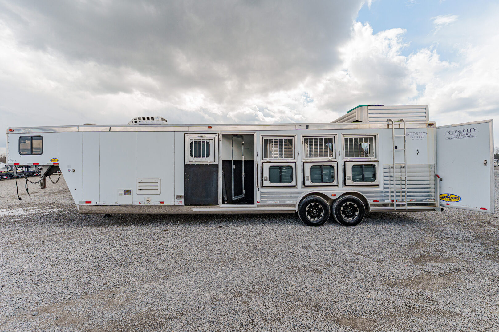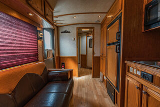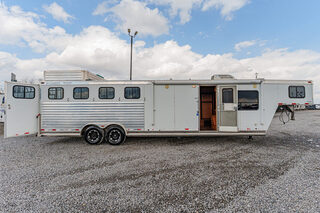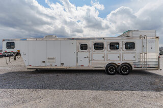 View Inventory: https://leonardtrailers.com/inventory/45899 Just Arrived and will not last long! 4 horse 12’ LQ, 8’ wide with mangers, escape door, lined and insulated, generator, power jack, 6 cu fridge, sofa, tons of storage! Stock Number:45899