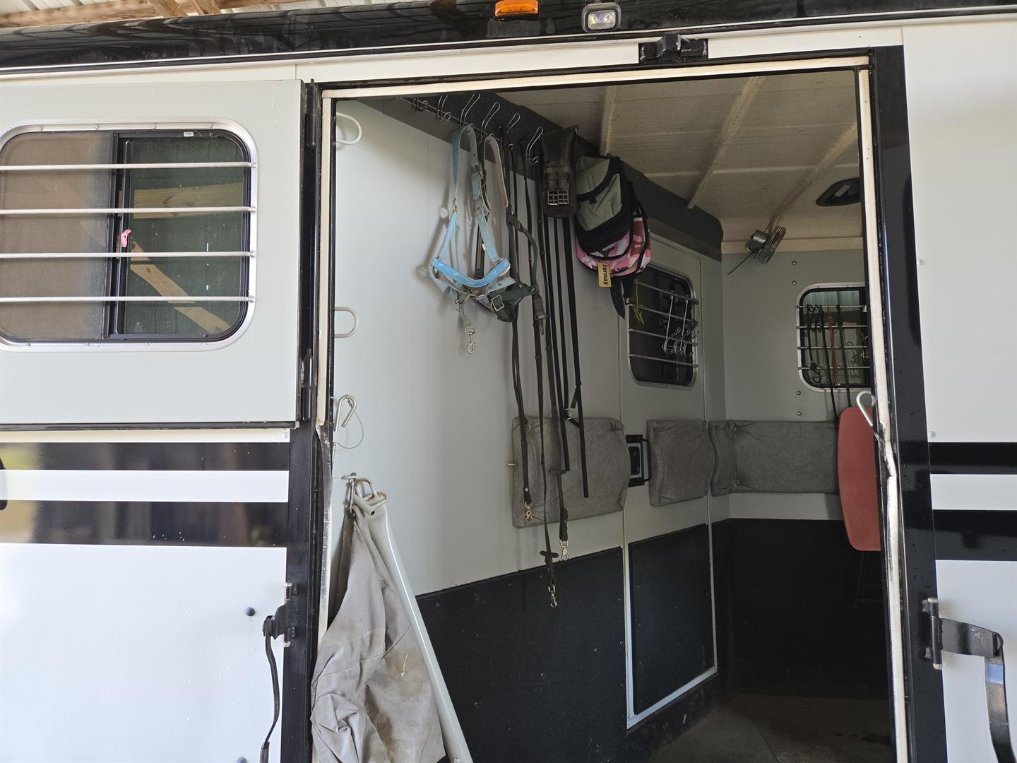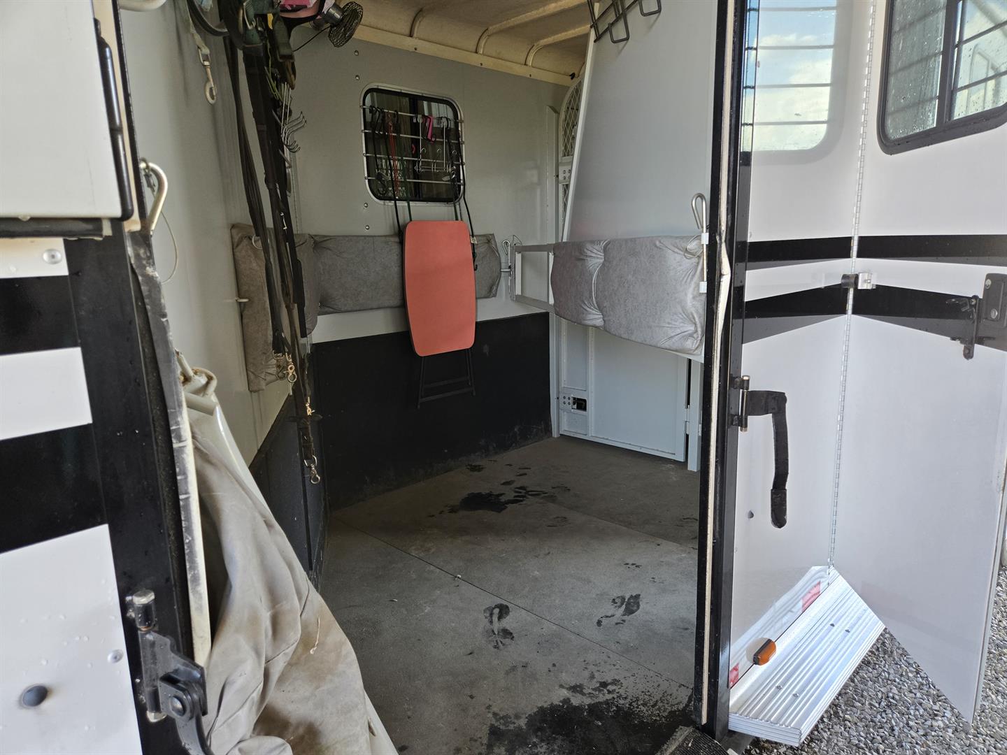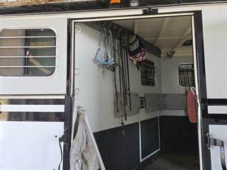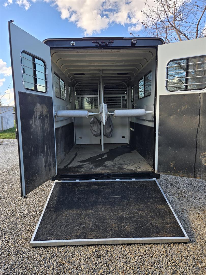 Only transporting 2 horses, the third slant load stall can be used for additional storage.
