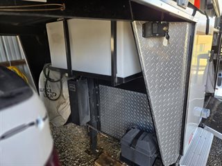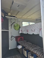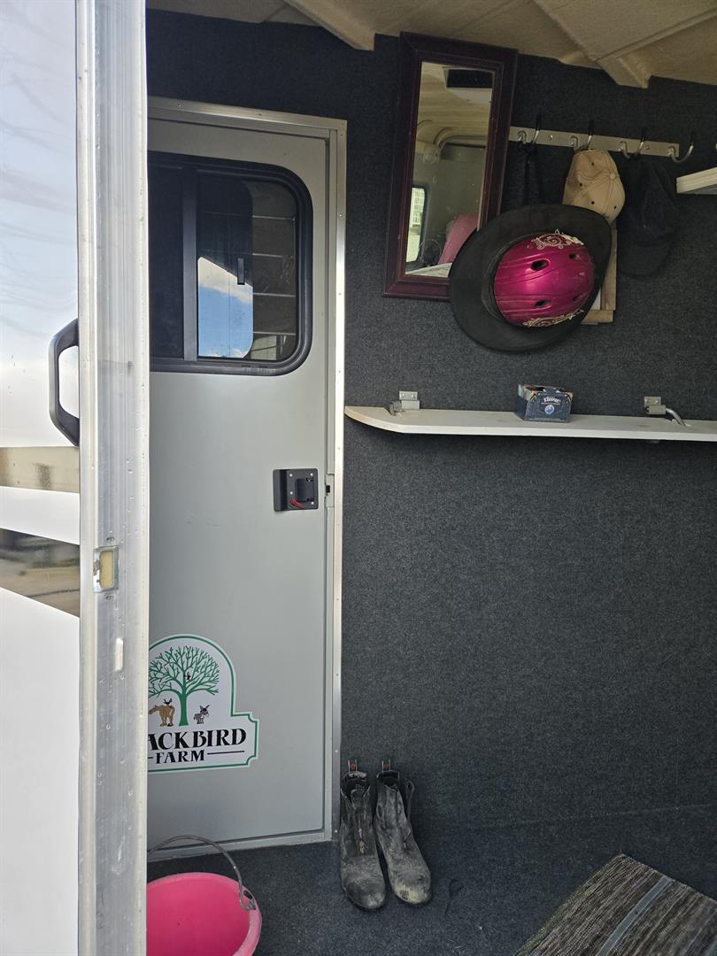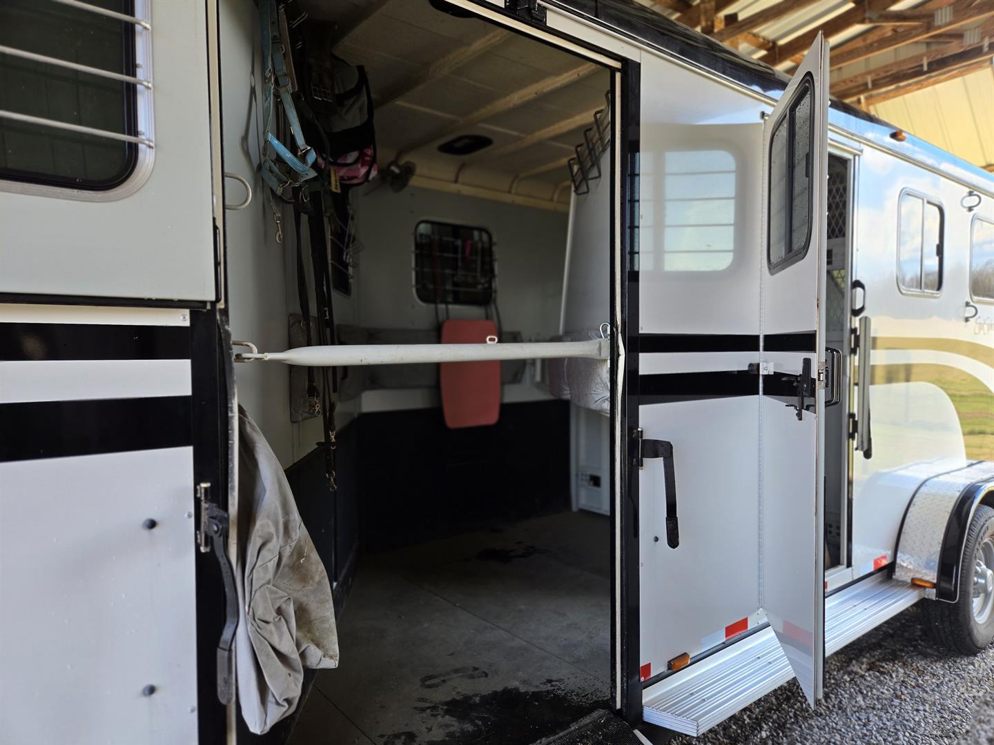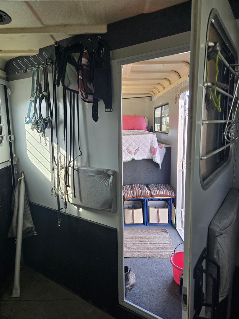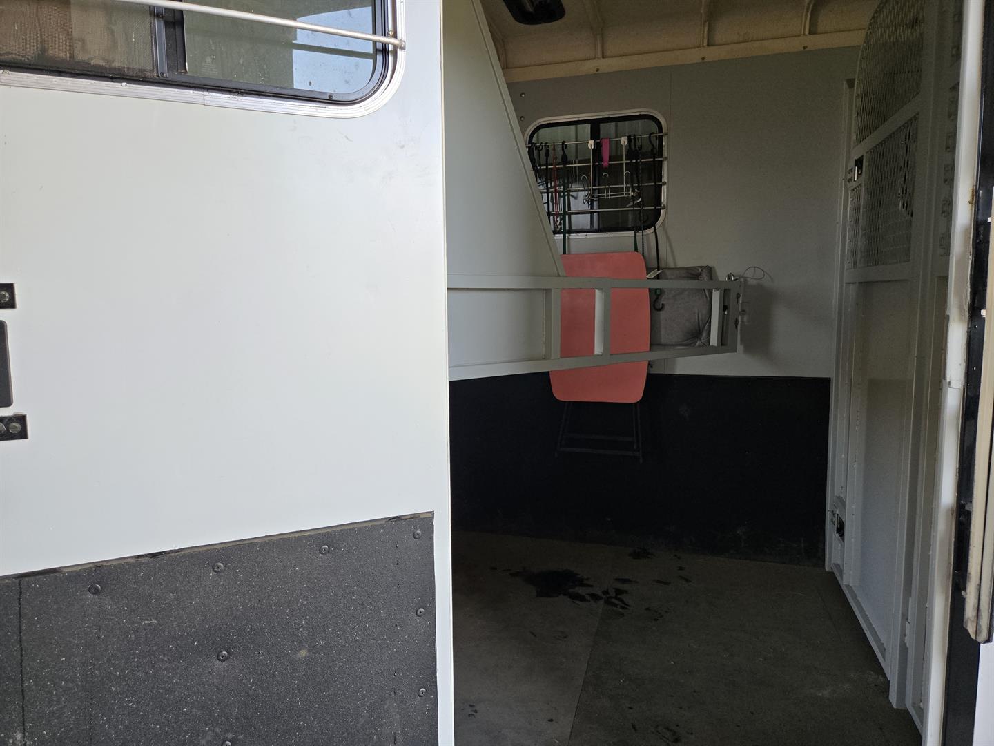 Only transporting 2 horses, the third slant load stall can be used for additional storage.