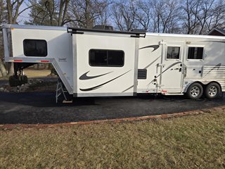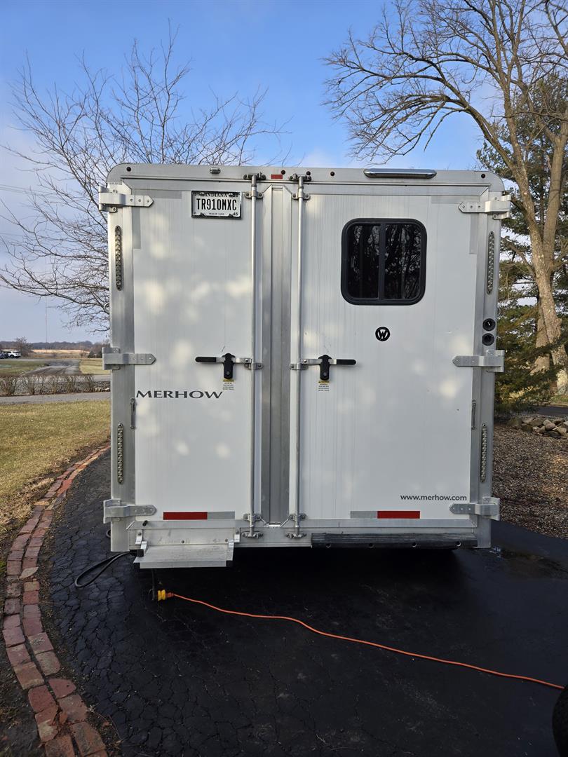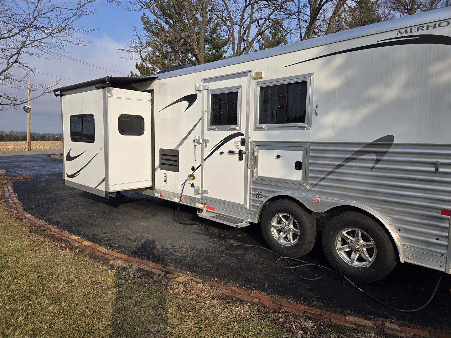Well maintained Merhow Newer tires and batteries. Features Electric awning dual hydraulic jacks Dual propane tanks. FULL sized fridge breakfast bar large deep double sink two burner stove under glass convection/ microwave oven large shower loads of cabi ets and under couch drawer space brand new queen sized mattress stallion wall divider 60/40 rear doors drop down screened windows on both sides carpeted collapsible tack room with adjustable removable saddle rack. Lots of Merhow special touches.