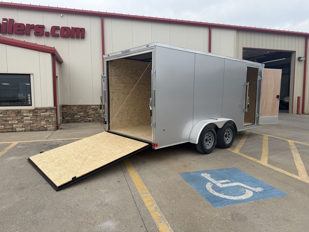 7’ x 16’ CGR 7K Cargo Trailer V Nose 2 x 3,500 lb. EZ Lube Brake Axles Brakes on Both Axles Galvanized Steel Roof Insulated Interior Roof Liner LED Tail Lights 1 Interior Light w/ Switch 2 5/16 in Coupler +/* 6’ 6 in Interior Height .080 Advance Polycore SCREWLESS SIDING ATP Aluminum Fenders 2K Jack ST 205 75 R 15 in Radials Black Mod Wheels Spring Assist Rear Ramp Door 36 in Side Door w/ Cam Bar and RV Locking System 3/4 in Poly Mac Floors 3/8 in Poly Mac Walls on 16 in Centers Flow Through Vent   Empty Weight: 2,260 lbs. GVWR: 7,000 lbs. Carrying Capacity: 4,740 lbs.