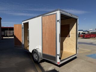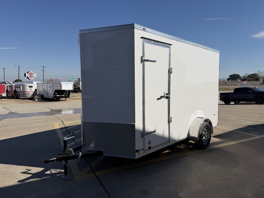 6 x 12 1 x 3.5K Idler Axle Galvanized Steel Roof LED Tail Lights 2in Coupler 7ft Interior Height .080 Polycore Screwless Siding ATP Aluminum Fenders 2K Jack ST205 75 R15 Radial Tires Double Rear Doors 36in Side Door w/ Cab Bar and RV Latch (Drivers Side) 3/4in Floors 3/8in Walls 3ft x 5ft Concession Awning on Curb Side Empty Weight 1,200lb G.V.W.R. 3,500lb Carrying Capacity 2,300lb