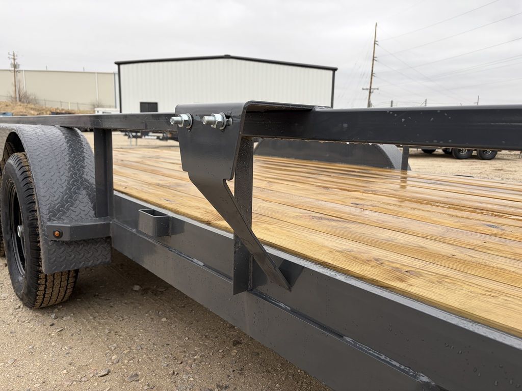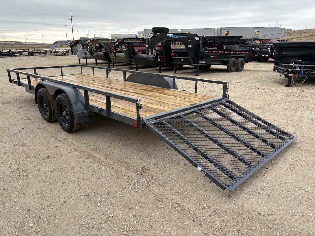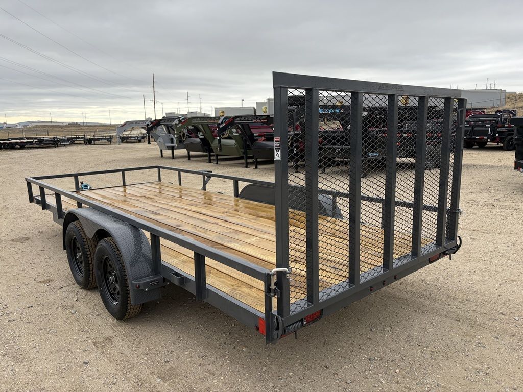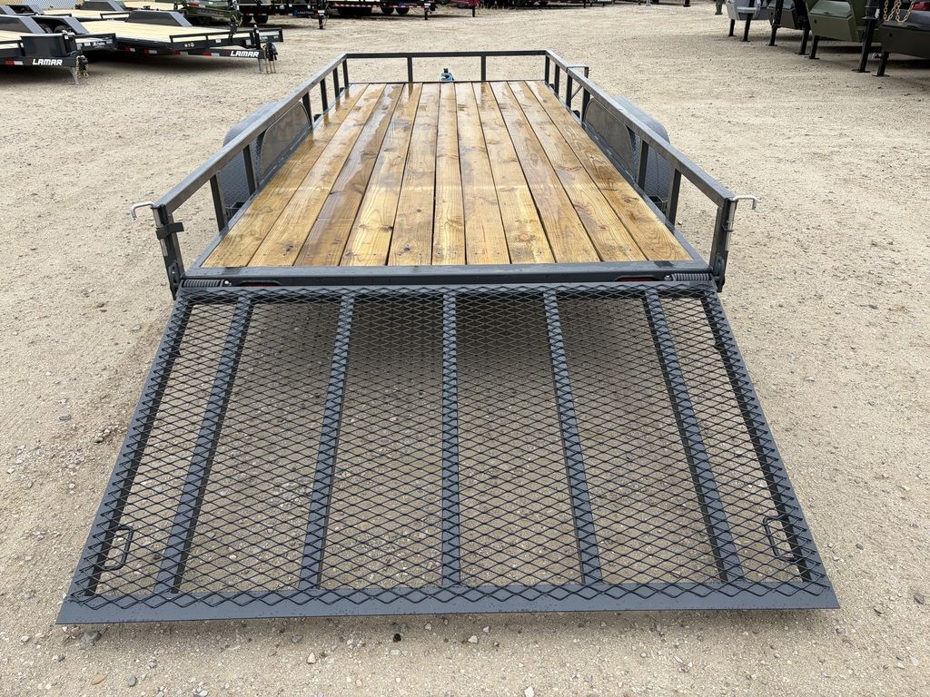 BUMPER PULL3.5K EZ LUBE IDLER SPRING AXLE & ELECTRIC BRAKE SPRING AXLE205/75 R15 (C) 6PLY TIRE WITH BLACK WHEELSPARE TIRE MOUNT2” 10K DEMCO ADJ CAST COUPLER2K TOP-WIND FLIP JACKWRAP TONGUESTRAIGHT DECK4’ SPRING ASSISTED LAY-DOWN GATEROUND DIAMOND PLATE TEARDROP FENDERSSTANDARD HEIGHT SIDE RAILS2” X 2” SQUARE TUBE TOPRAILSTANDARD STAKE POCKETS4” CHANNEL FRAME24” CENTER-TO-CENTER CROSSMEMBERSTREATED YELLOW PINE FLOORWIRINGLED PACKAGEDECAL PACKAGELAMAR GRAY POWDER COATWeight: 1,910lbs.