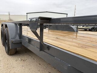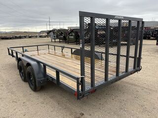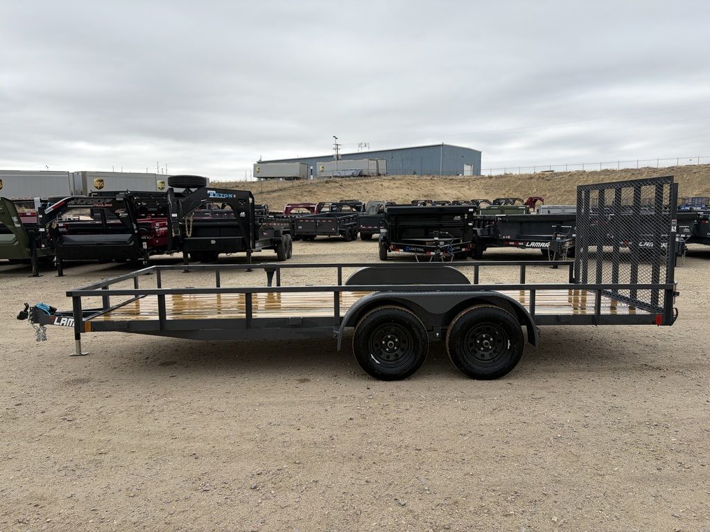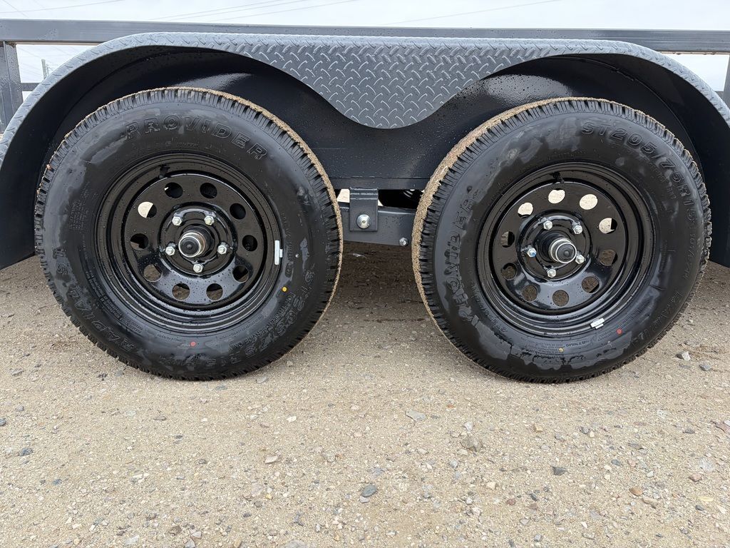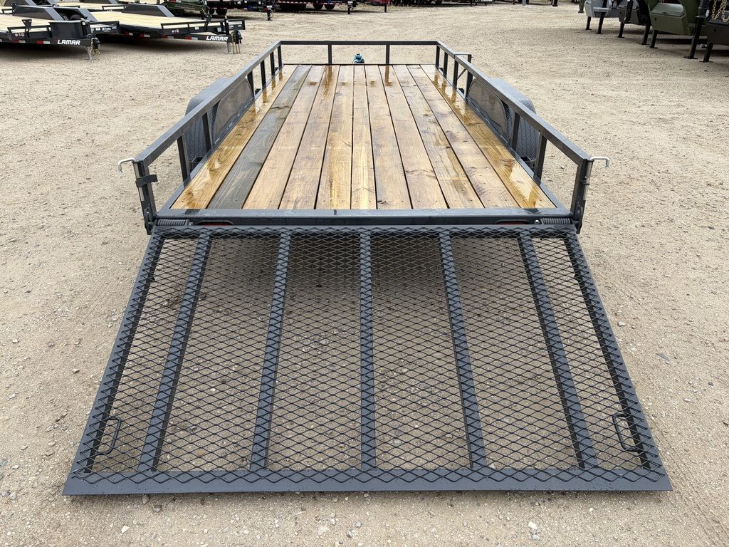 BUMPER PULL3.5K EZ LUBE IDLER SPRING AXLE & ELECTRIC BRAKE SPRING AXLE205/75 R15 (C) 6PLY TIRE WITH BLACK WHEELSPARE TIRE MOUNT2” 10K DEMCO ADJ CAST COUPLER2K TOP-WIND FLIP JACKWRAP TONGUESTRAIGHT DECK4’ SPRING ASSISTED LAY-DOWN GATEROUND DIAMOND PLATE TEARDROP FENDERSSTANDARD HEIGHT SIDE RAILS2” X 2” SQUARE TUBE TOPRAILSTANDARD STAKE POCKETS4” CHANNEL FRAME24” CENTER-TO-CENTER CROSSMEMBERSTREATED YELLOW PINE FLOORWIRINGLED PACKAGEDECAL PACKAGELAMAR GRAY POWDER COATWeight: 1,910lbs.