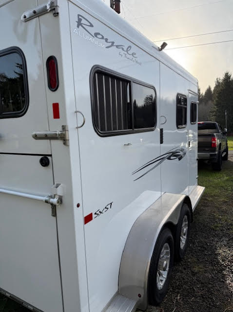 This 2019 Trails West Royale Aluminum SxST straight-load trailer is exceptionally clean, well cared for, and ready to haul. It has had only two owners, and the most recent owner never hauled horses or hay, leaving the interior in outstanding condition with minimal signs of use. TITLE IN HAND
