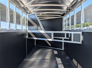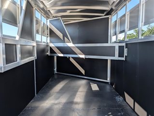 Lined Lower Walls, Dressing Room with Windows, One Handed Slam Latches, 3 Saddle Racks w/ Tack Hooks, Dome Lights in Dressing Room and Horse Area, Rails Pre-Installed For Plexi, Full Size Swing Gate, DUAL BRAKES, 7 Year Structaul Warranty, 2900 Empty Weight, 8320 GVWR!, 2 Years Free Raod Side Assistance, Single Piece Aluminum Roof